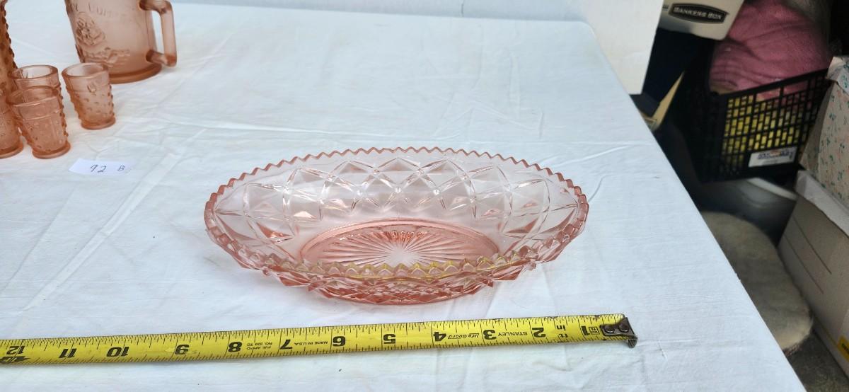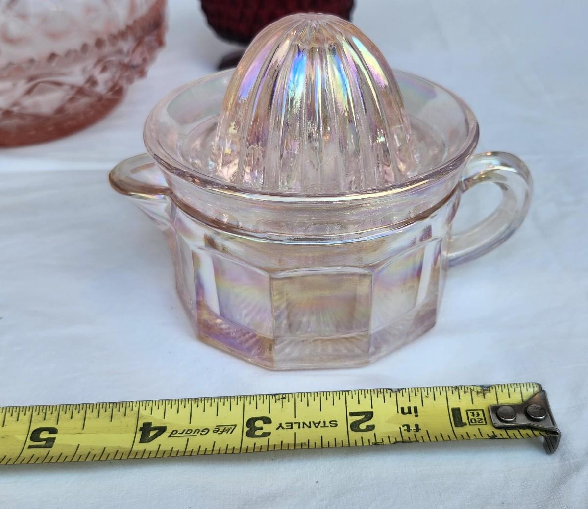 Sweet Pink Beveled Depression Glass Citrus Juicer Set