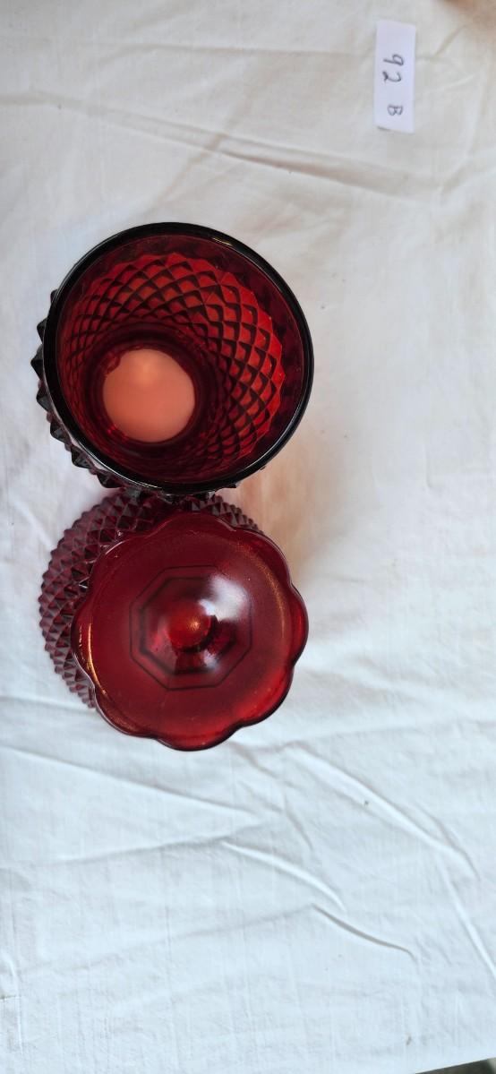 Vintage Indiana Glass Diamond Point Fairy Lamp Ruby Red