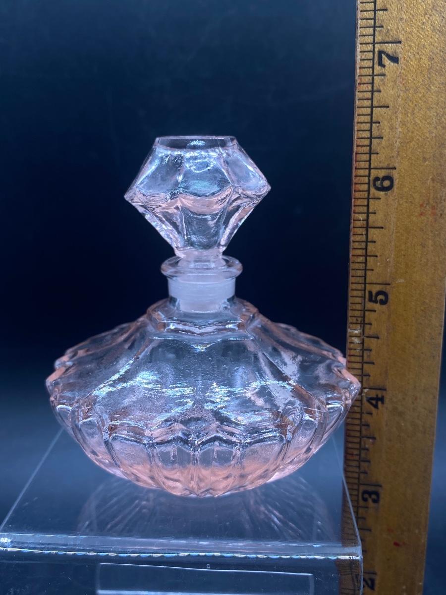 Small vintage pink glass perfume bottle. In good condition. About 3" tall.
