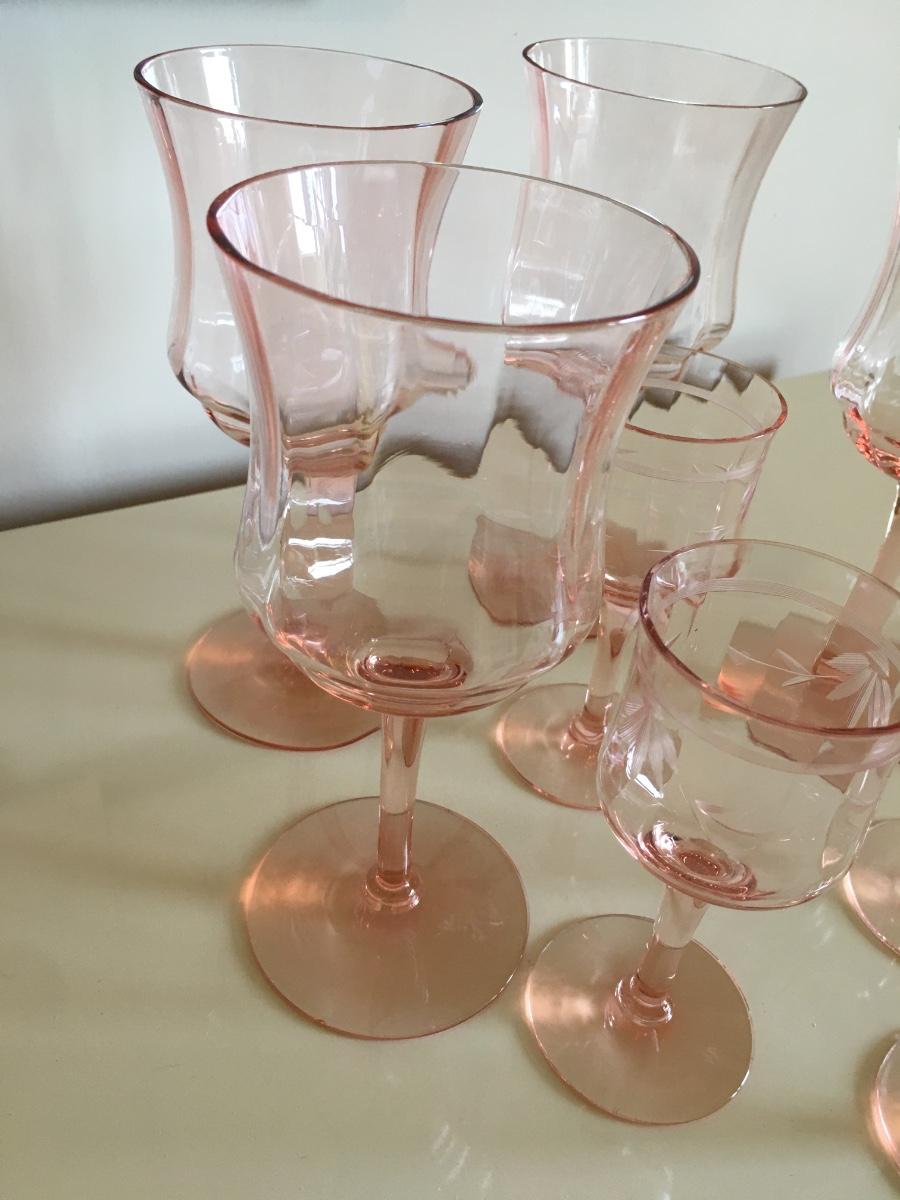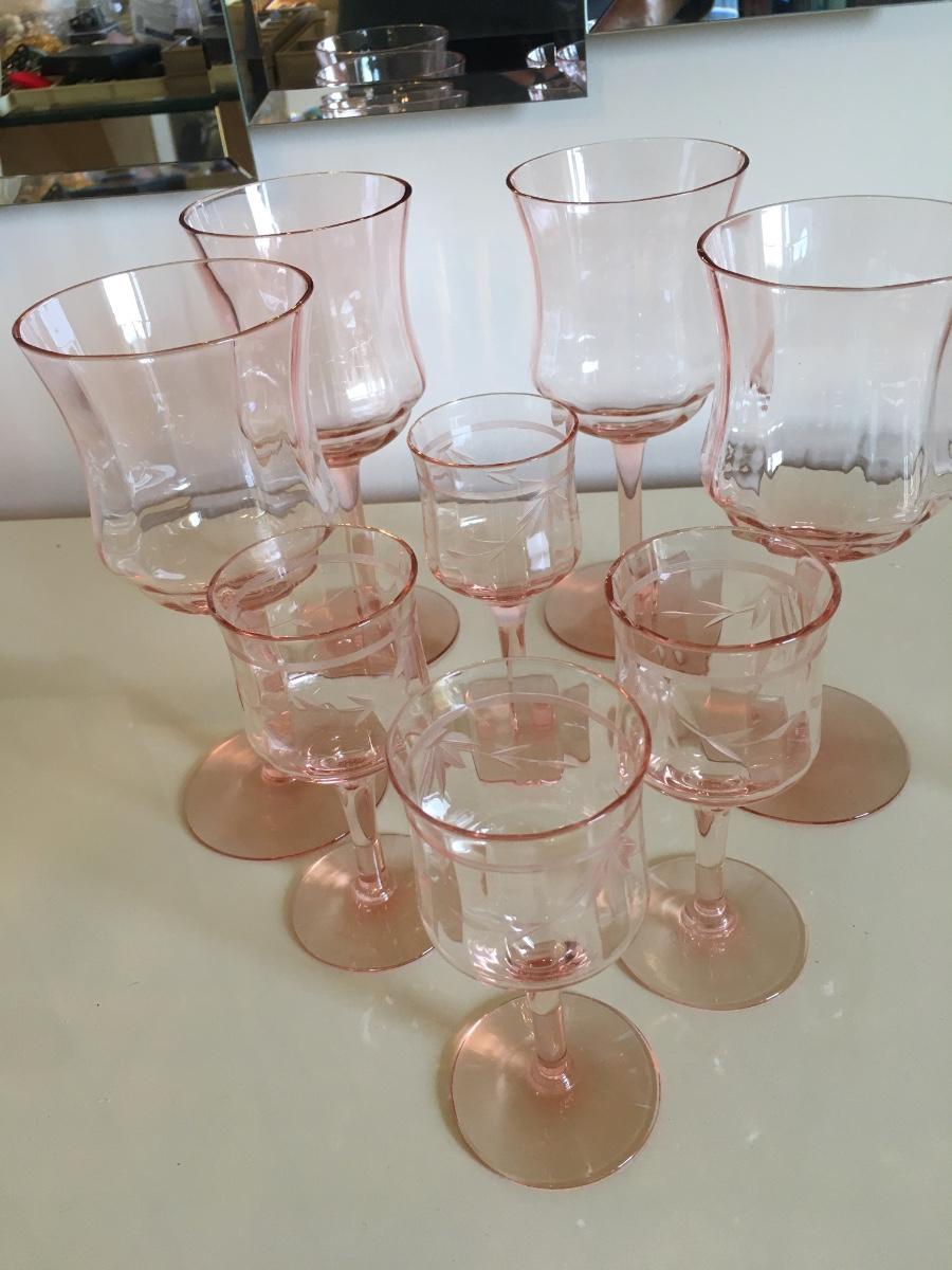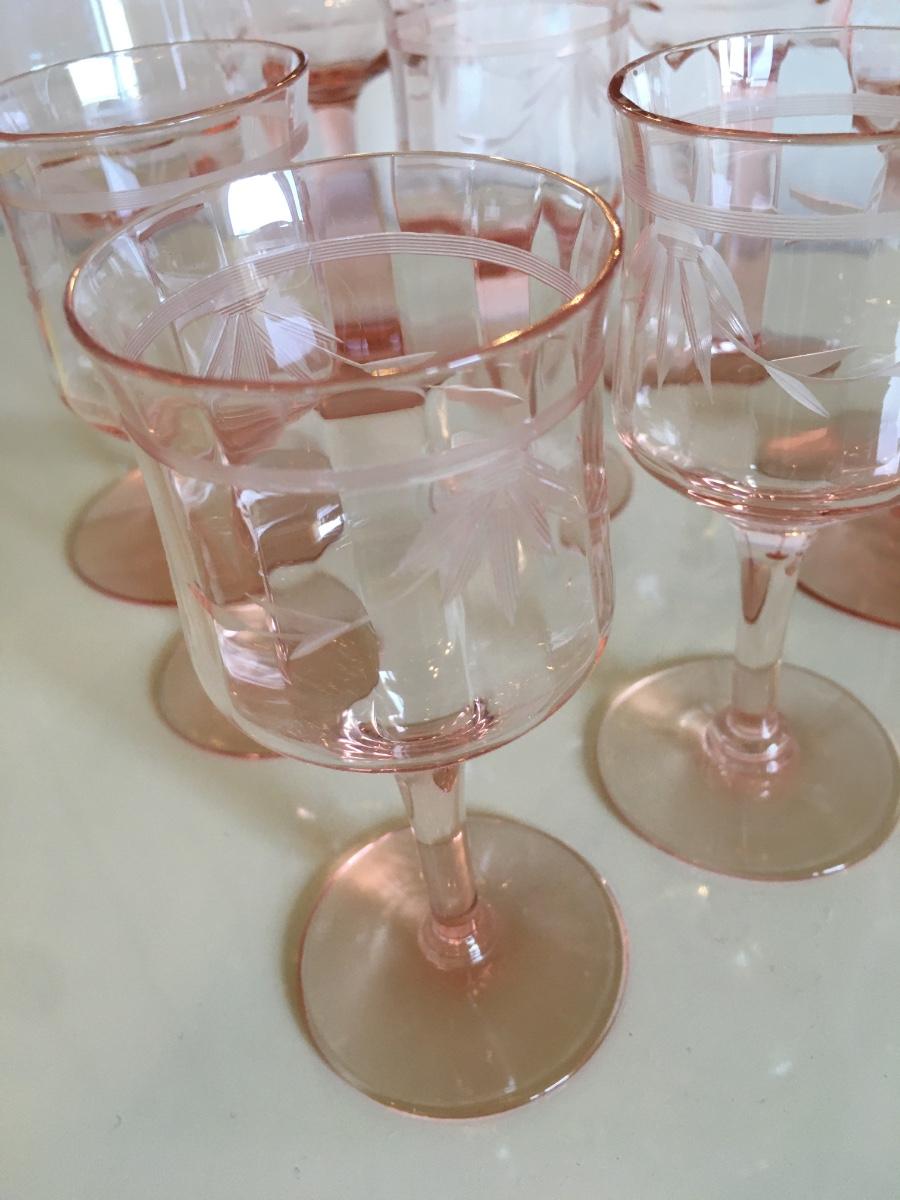 4 each wine glasses and etched pattern cordial glasses. Pretty!
