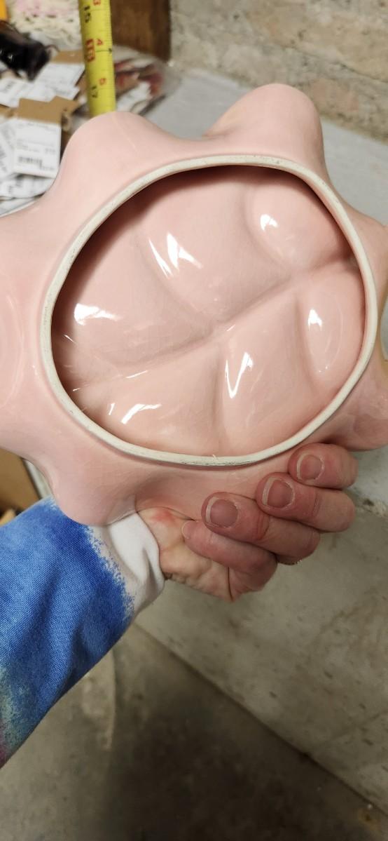 Vintage pink leaves and yellow container