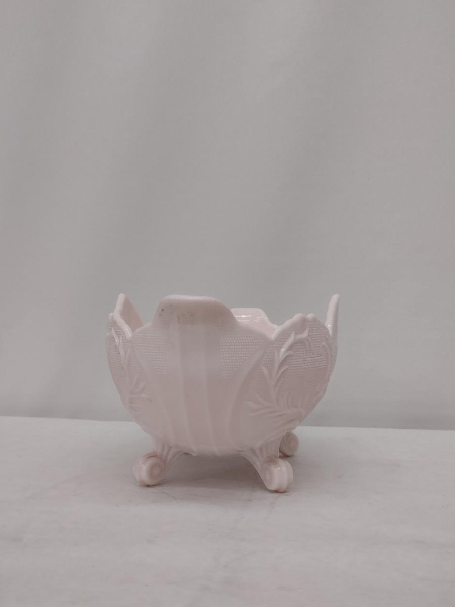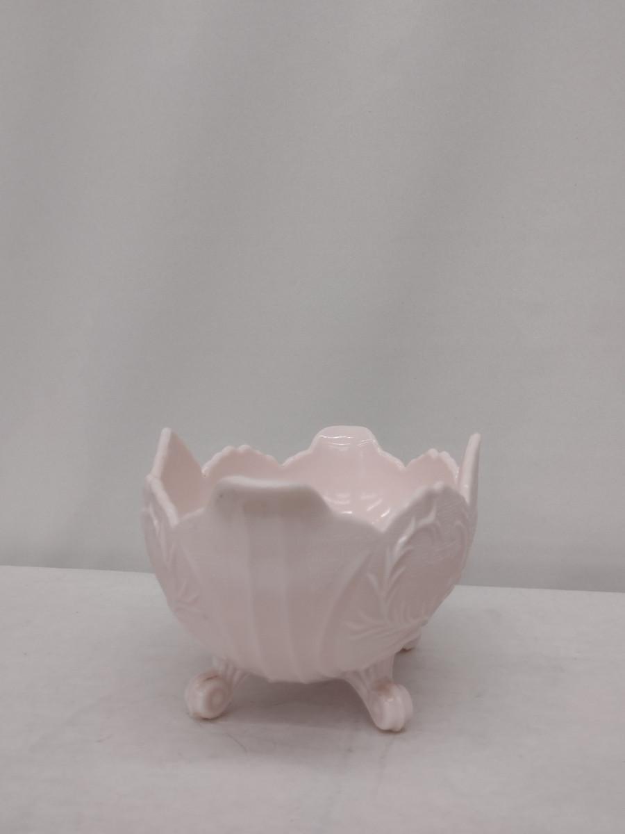 Vintage Pink Milk Glass Jeanette Lombardi Oval Footed Fruit Bowl