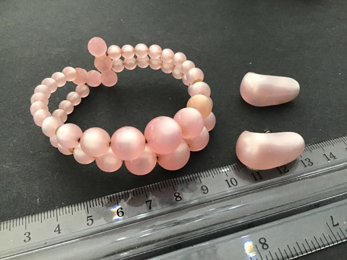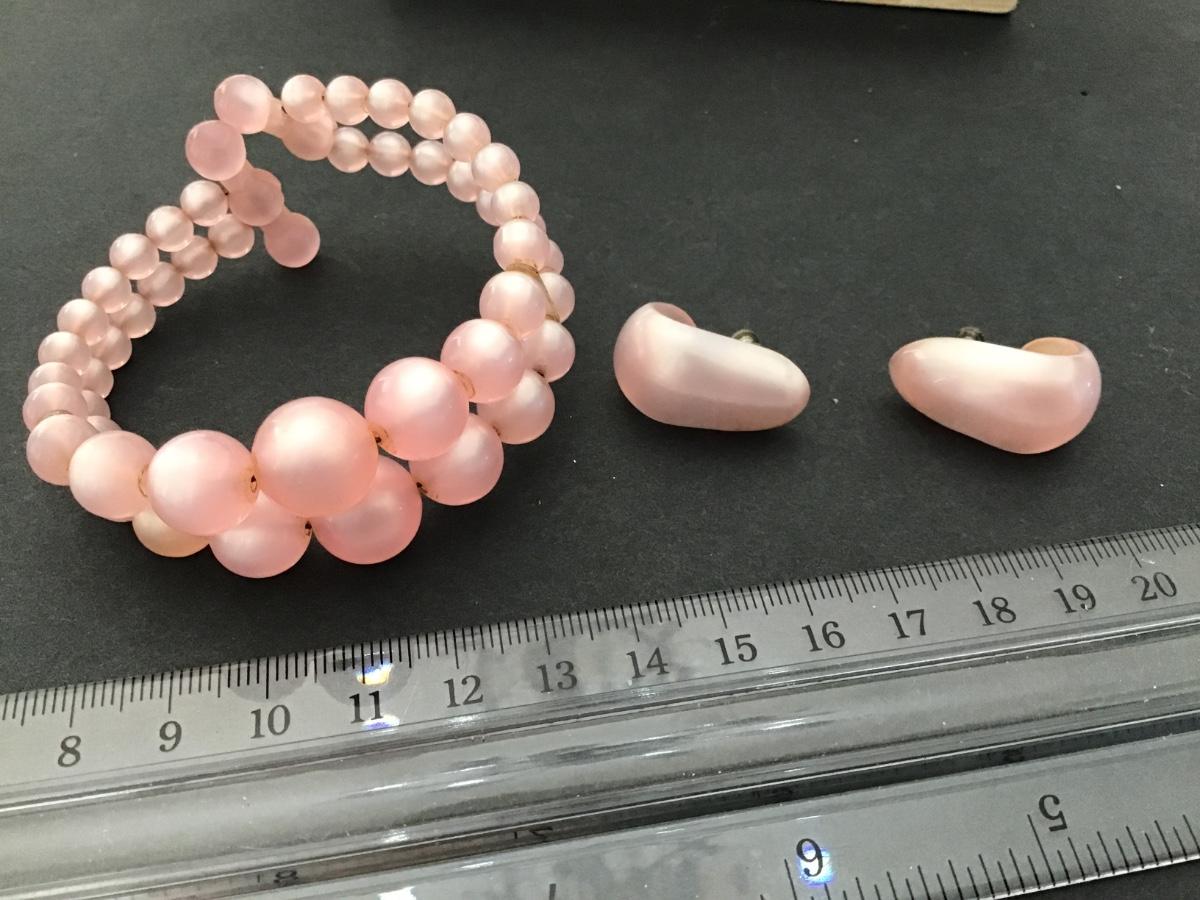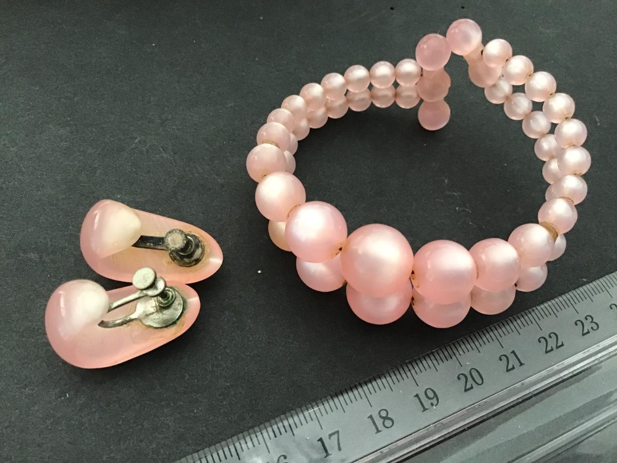 Vintage Pink Moon Glo Bracelet with Matching Screw Back Earrings