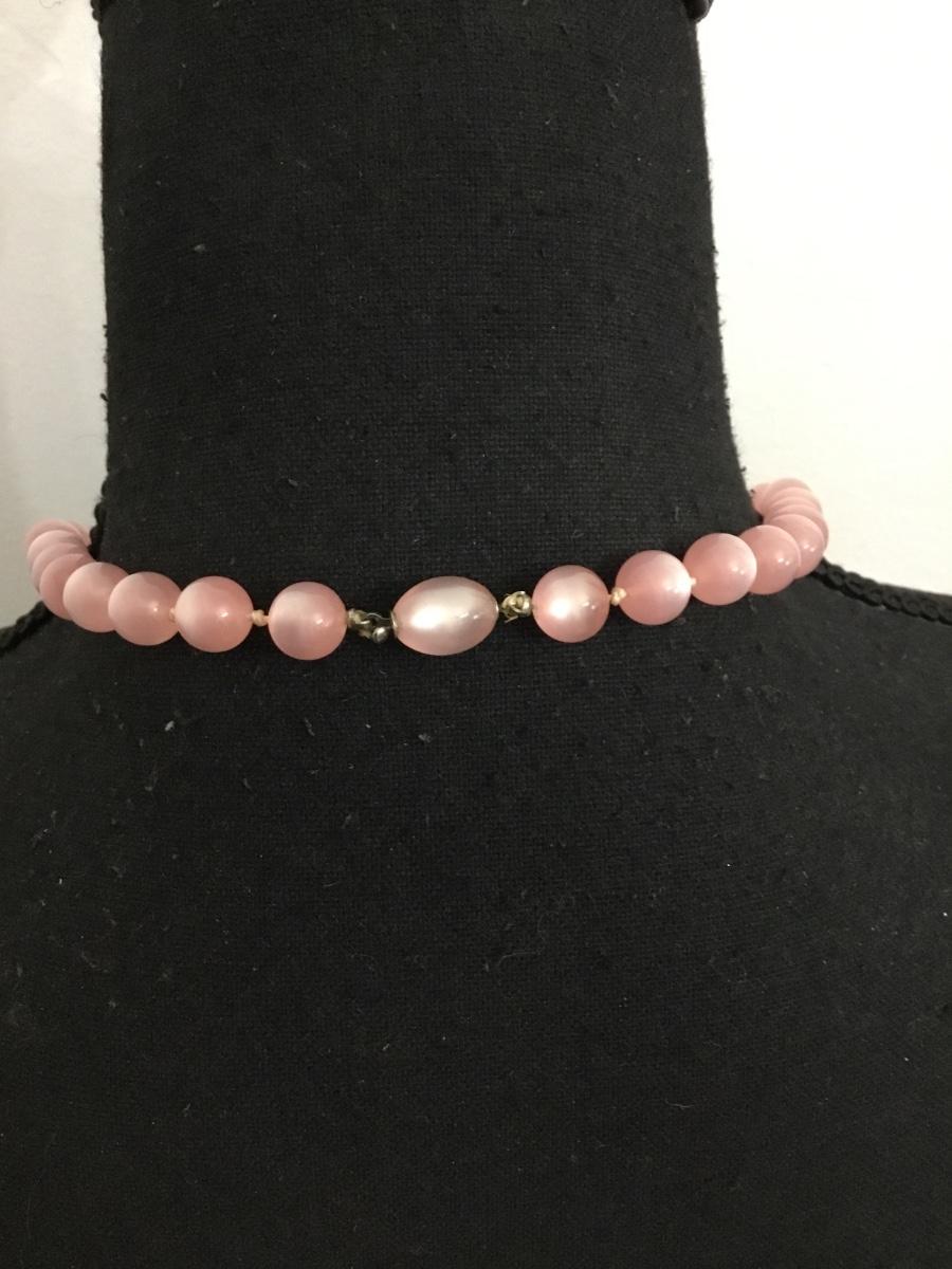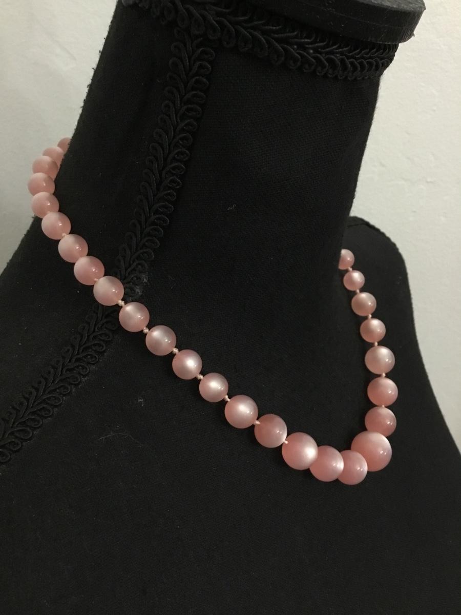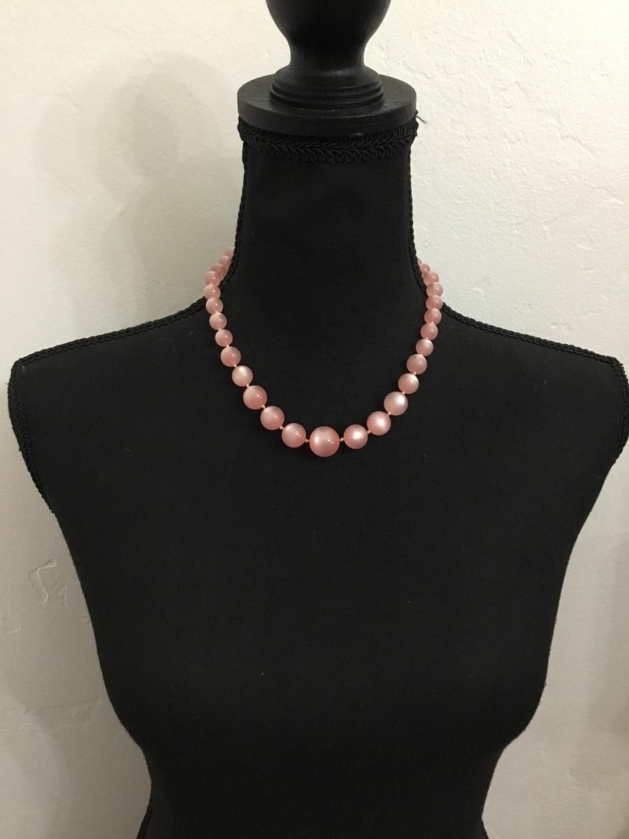 Vintage, pink moon, glow, plastic or Lucite type bead necklace