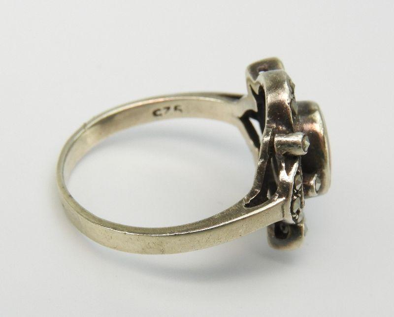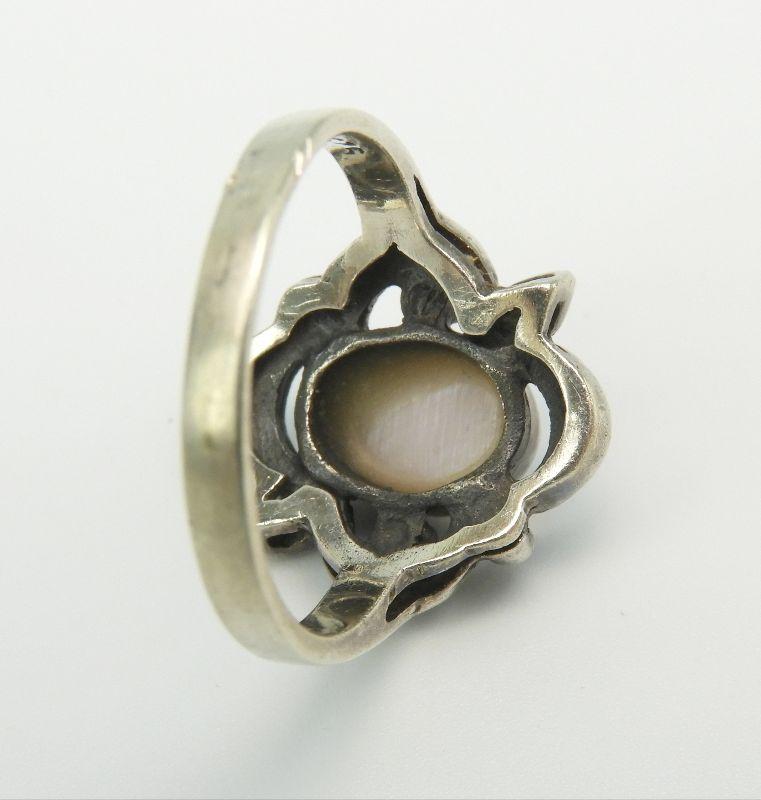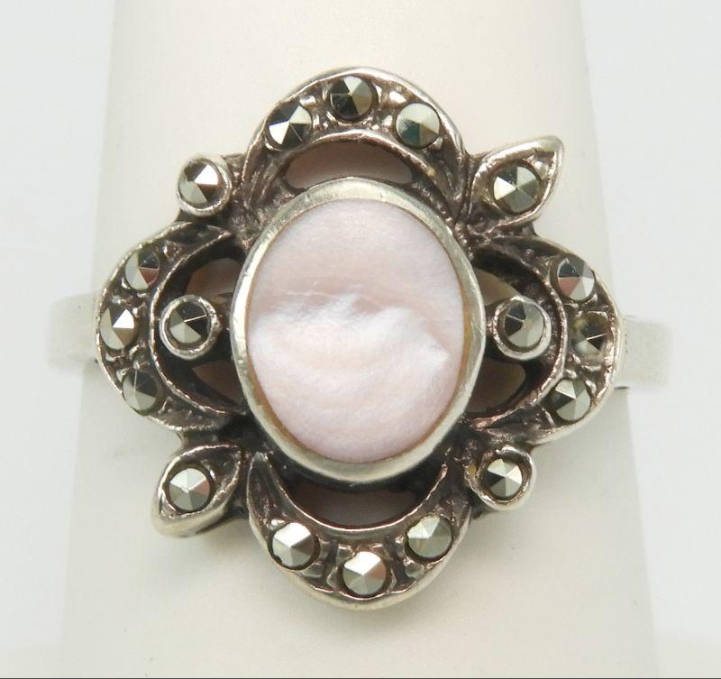 Vintage Pink Mother of Pearl & Marcasite Sterling Silver Ring