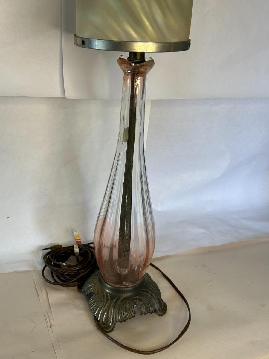 Vintage Pink Murano Style Table Lamp with Pearl Shade
