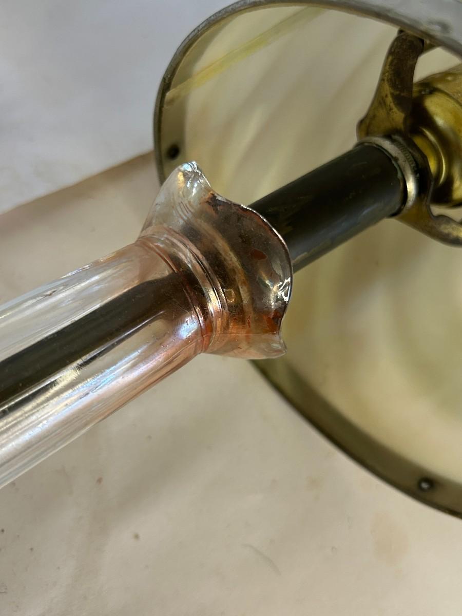 Disclosures: The lamp is in excellent condition but will benefit from slightly adjusting the shade and polishing the base. However, the current patina on the base is beautiful, hence the reduced price. We tested the lamp, and it is in proper working condition. As with all vintage electrical items, we recommend professional evaluation. (See pictures for details.)