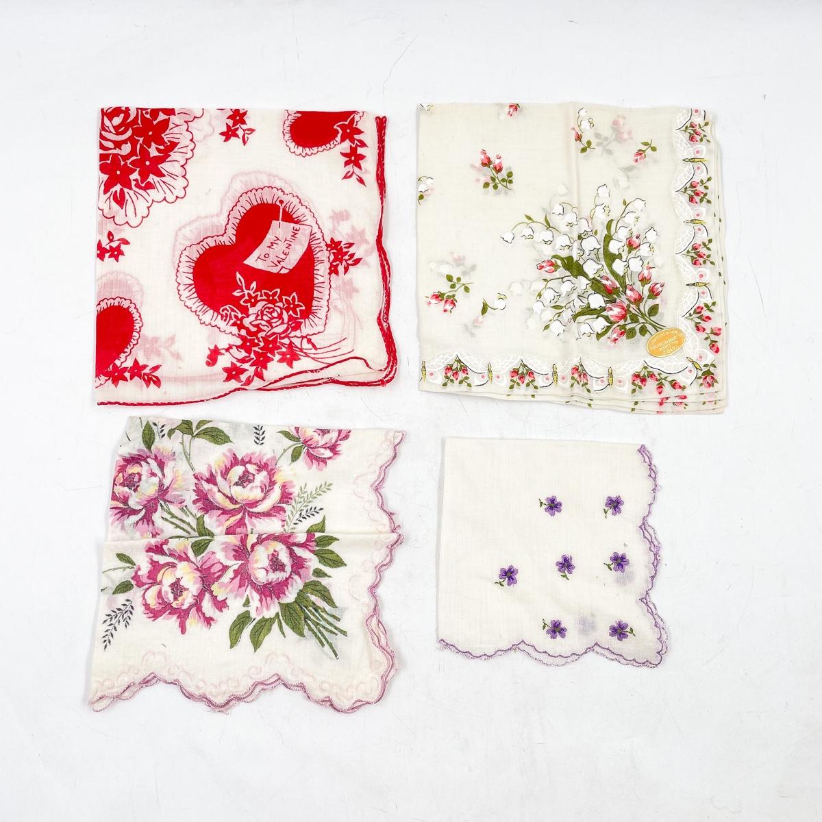VINTAGE PINK & RED FLORAL HANDKERCHIEFS