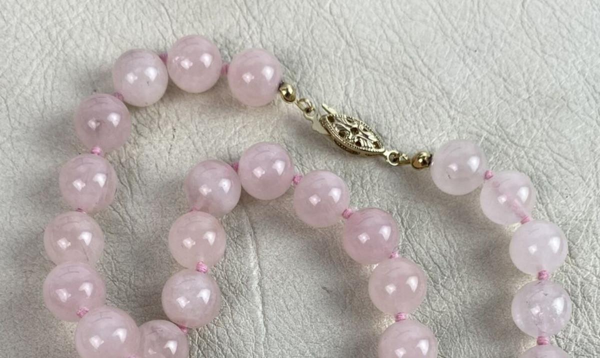 vintage PINK ROSE QUARTZ BEAD NECKLACE
