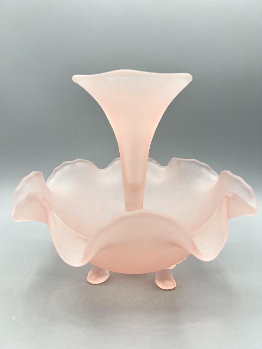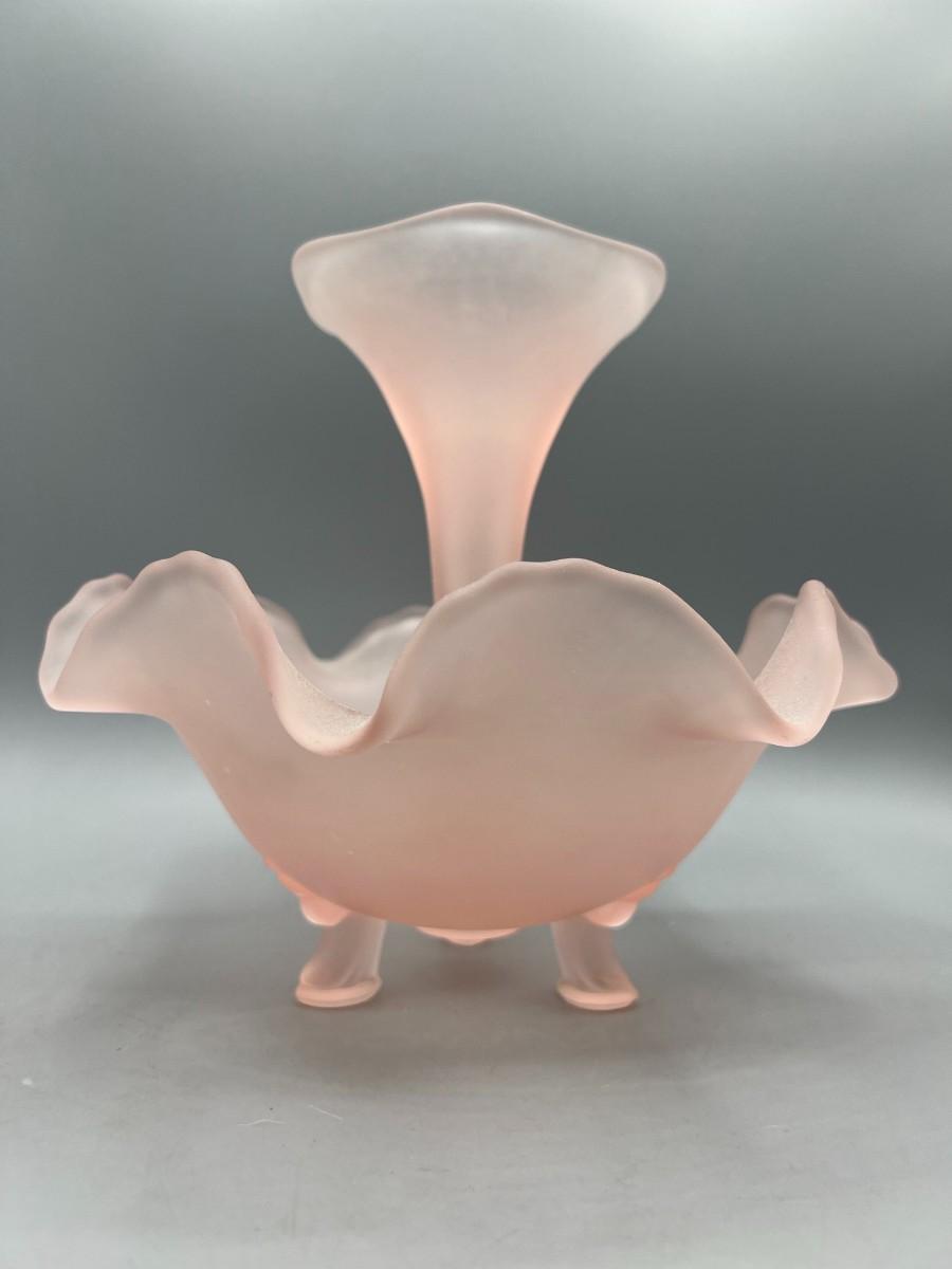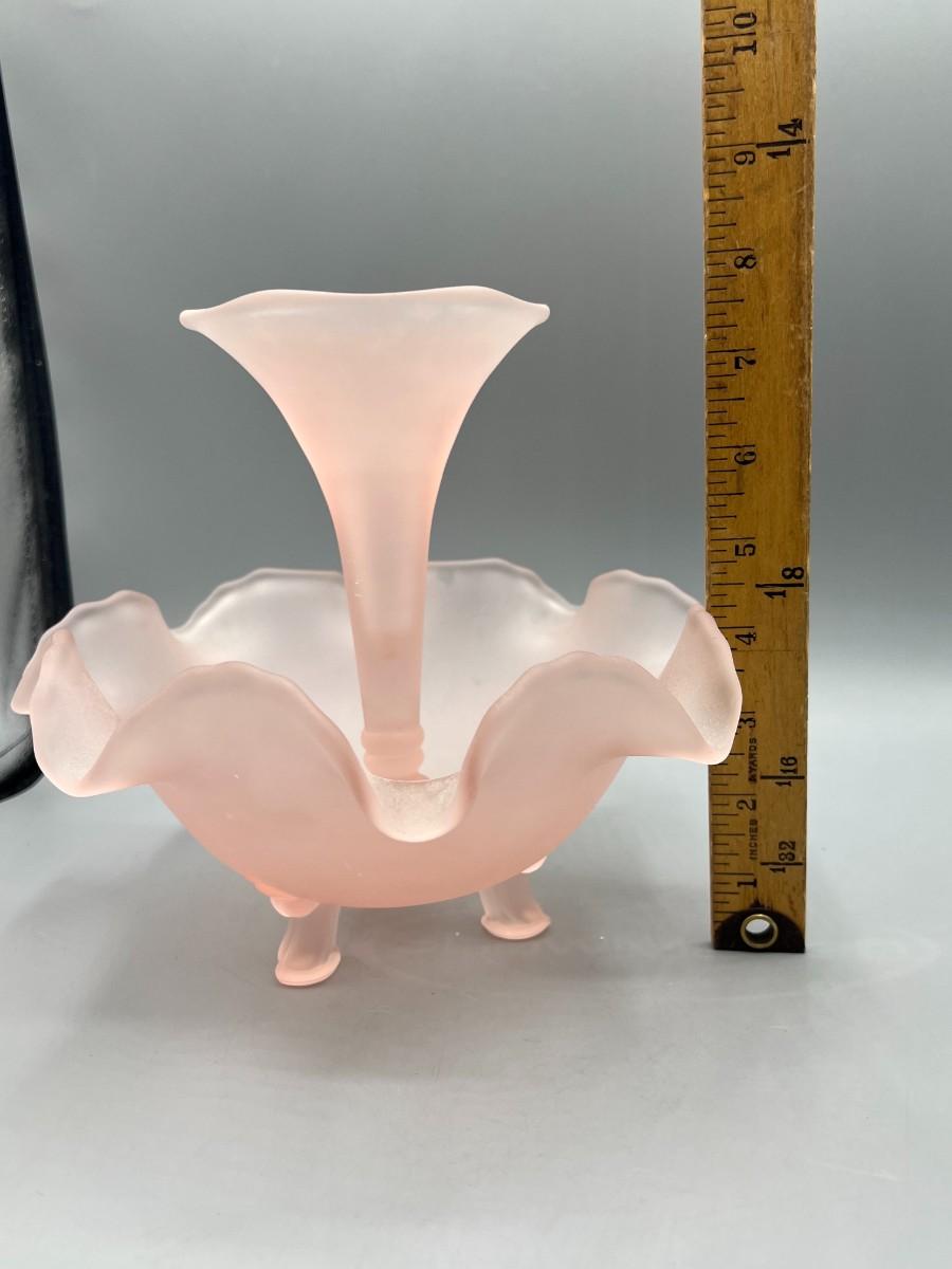 Vintage Pink Satin Frosted Glass Bud Flower Display Vase