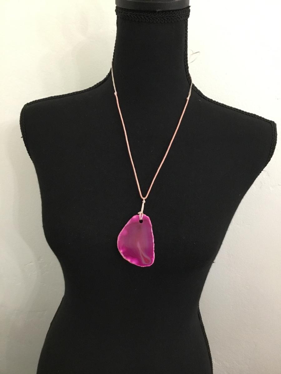 Vintage pink stone type pendant yarn type necklace