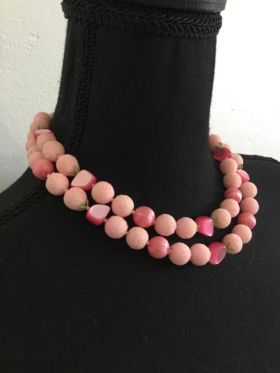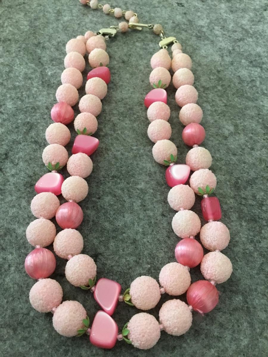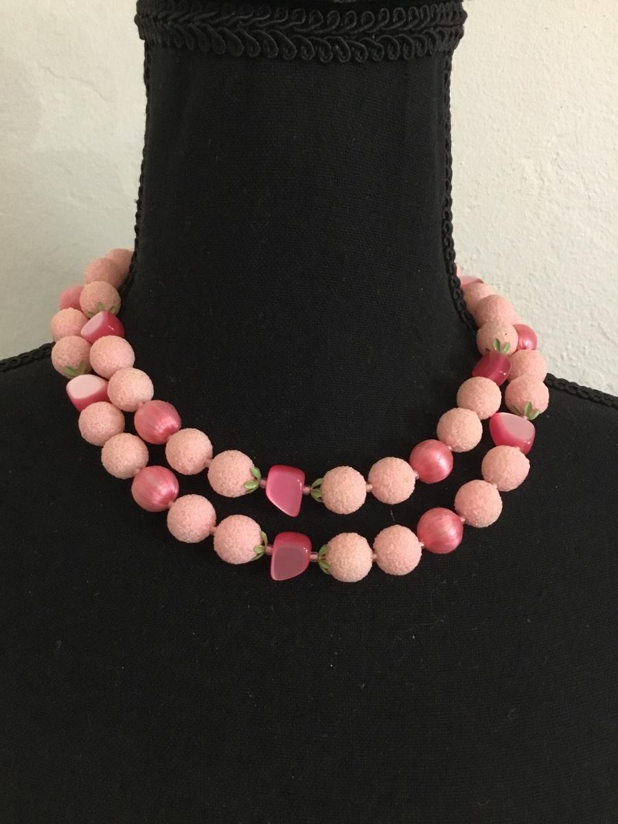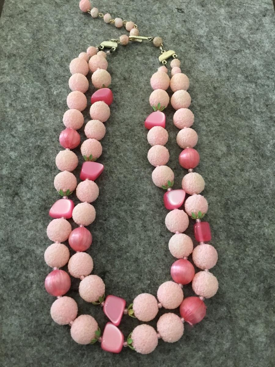 Vintage pink sugar, bead, double strand collar, choker necklace