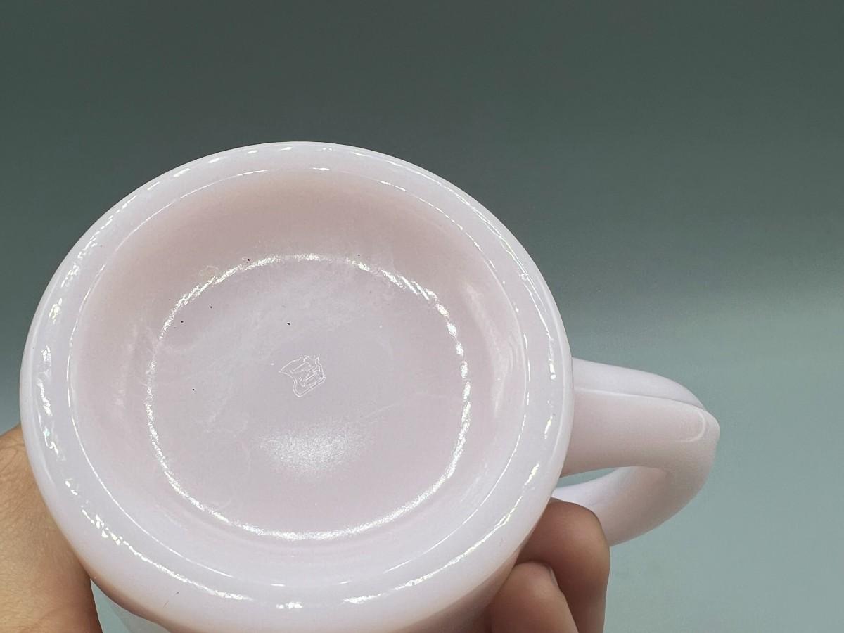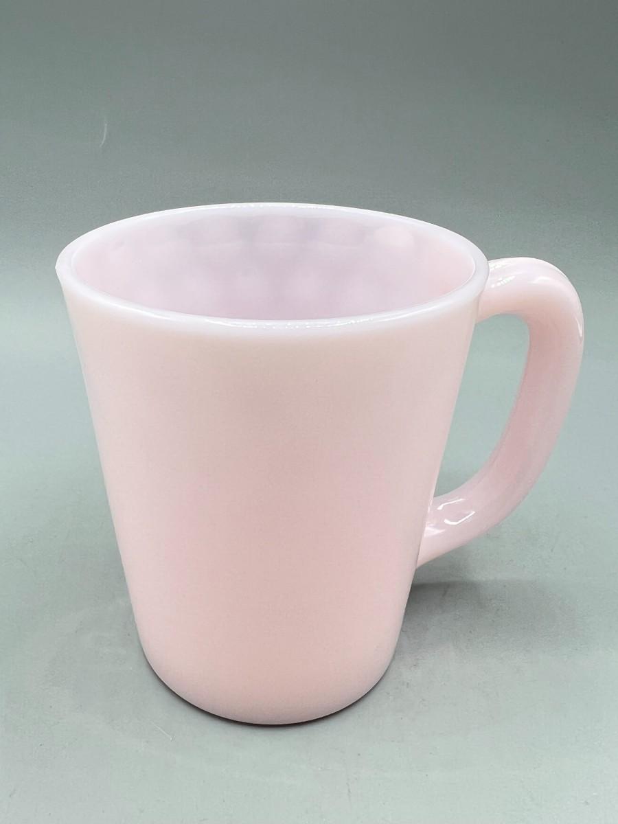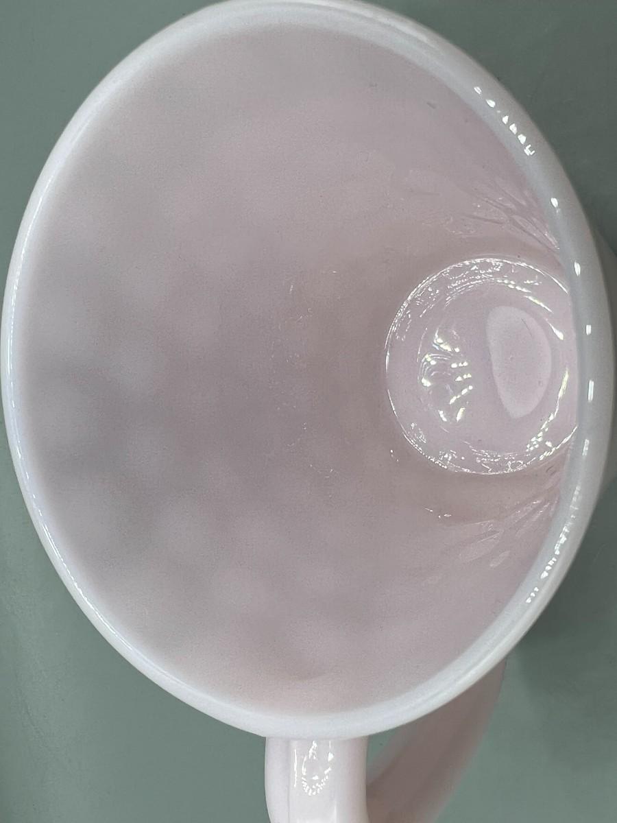 Vintage Pink  Milk Glass Coffee cup Thick Art Glass Coin Dot Drinking Mug