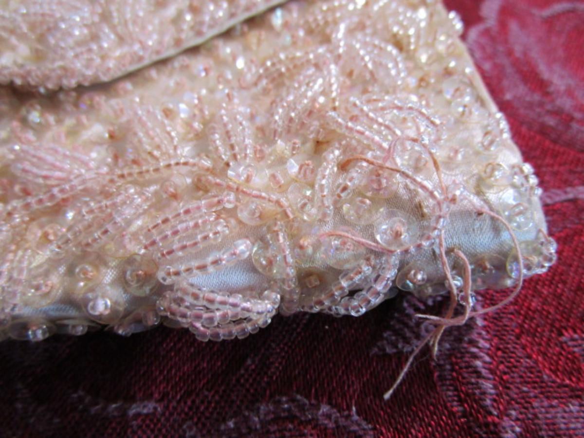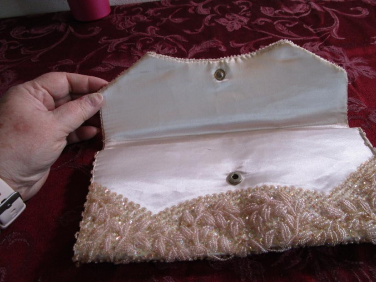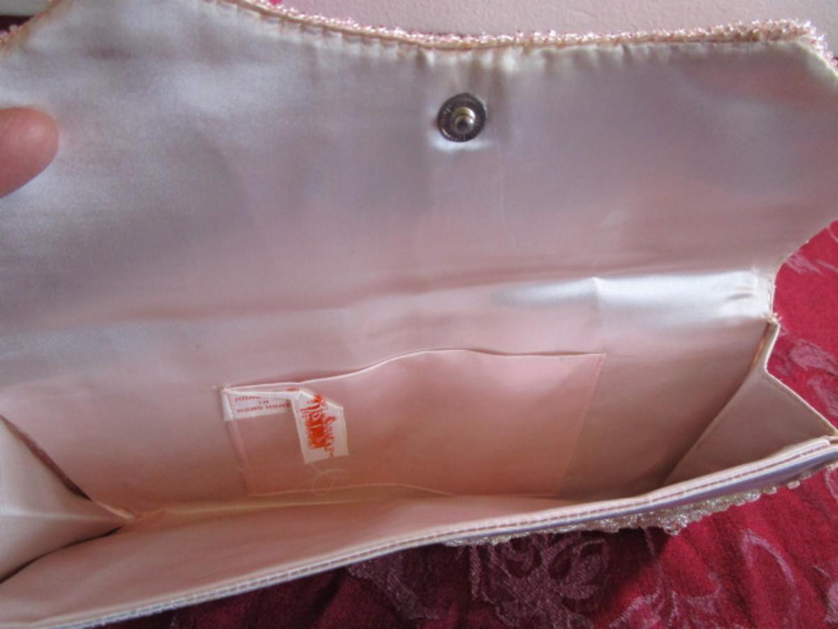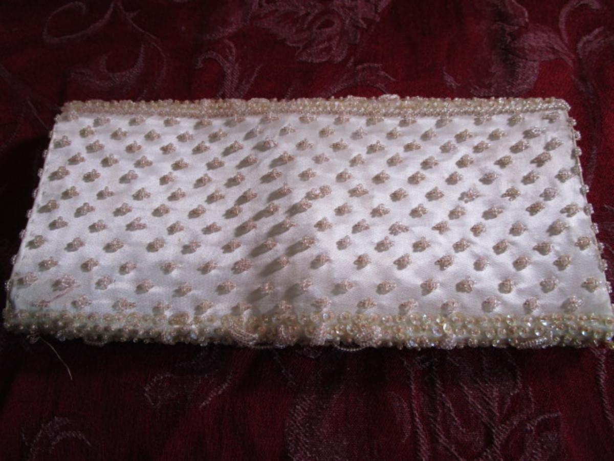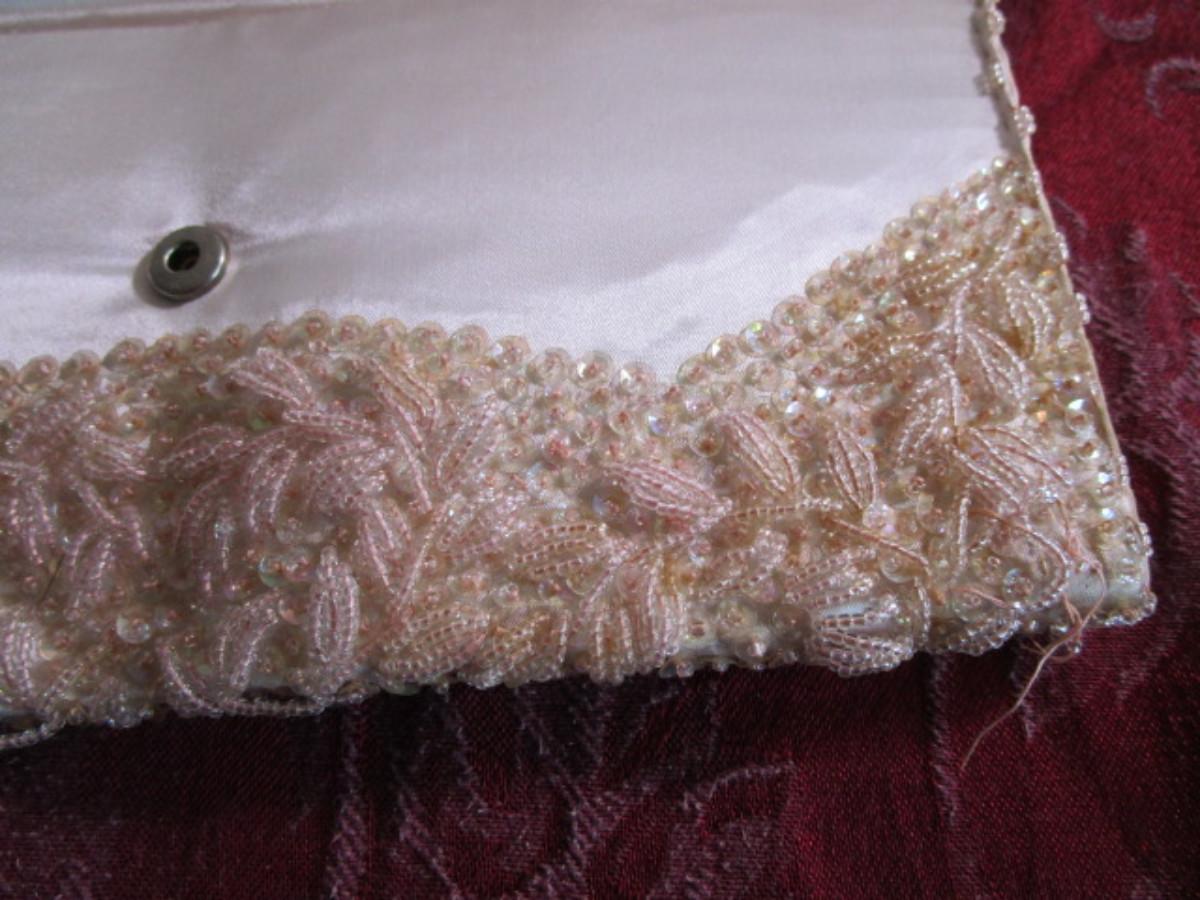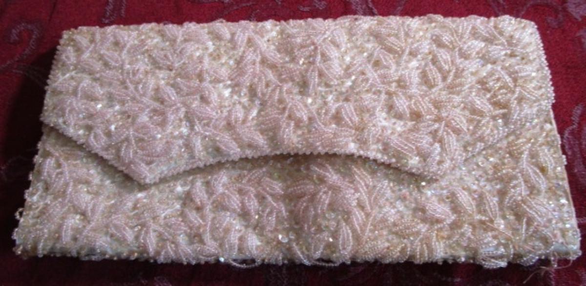 Vintage pink & white beaded clutch