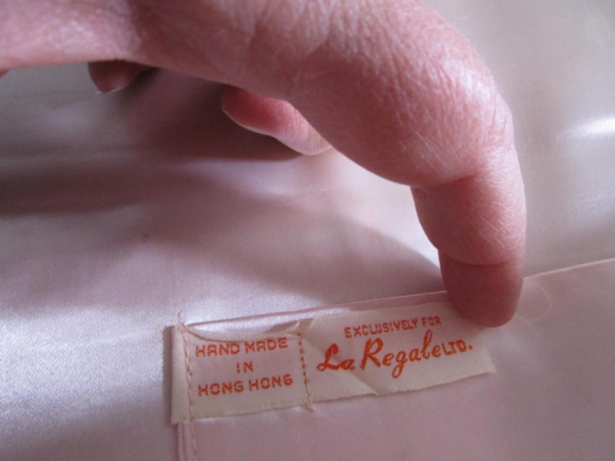 Made for La Regale Ltd in Hong Kong, has snap closure, 10" wide x 5" tall