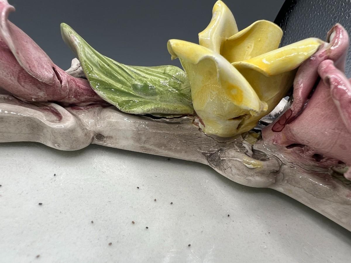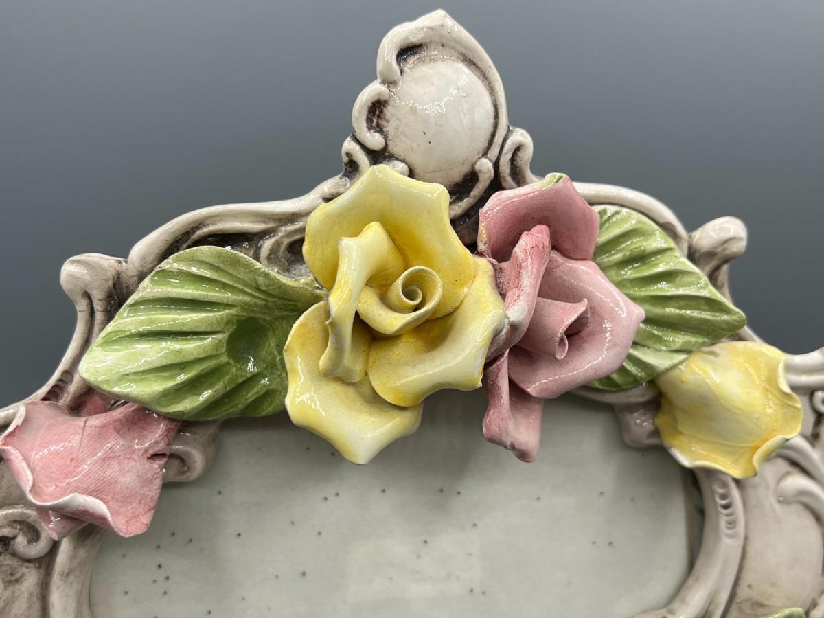 Vintage Pink & Yellow Rose Capodimonte Floral Porcelain Picture Frame