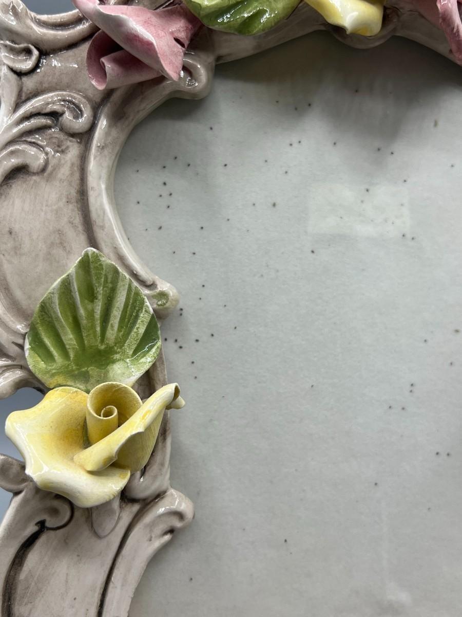 Vintage Pink & Yellow Rose Capodimonte Floral Porcelain Picture Frame