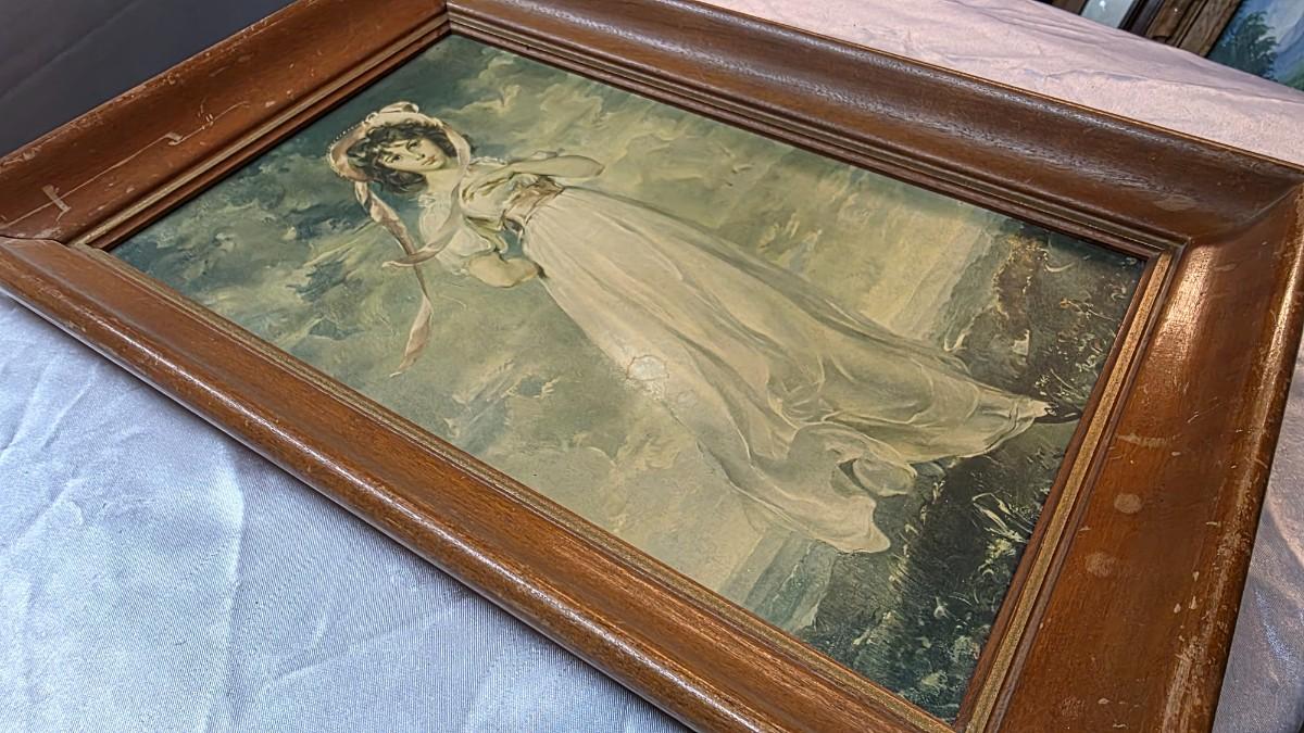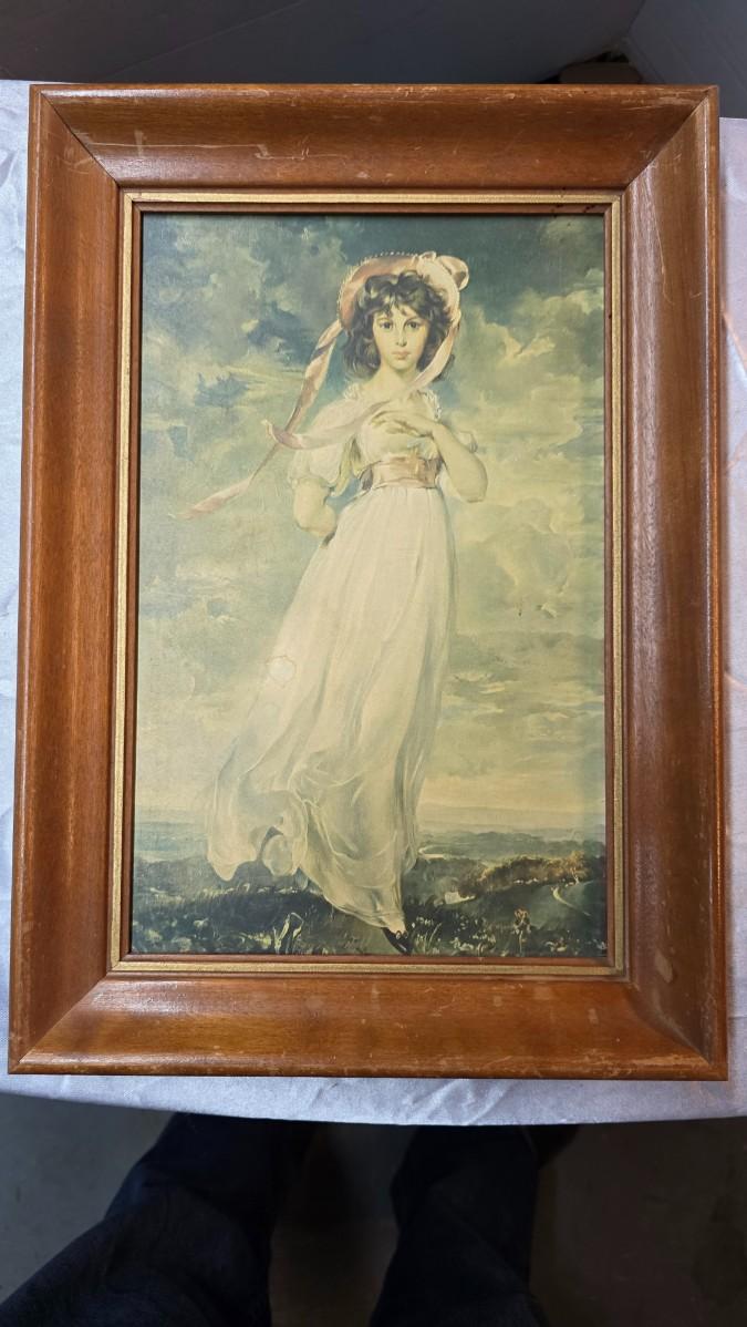 This reproduction, likely dating to the mid-20th century, reflects the era’s appreciation for classical artwork displayed within substantial wooden frames. The presentation enhances the romantic elegance of the portrait while giving the piece a strong decorative presence. Vintage prints such as this were often chosen to bring museum-inspired beauty into the home, blending sophistication with accessibility.