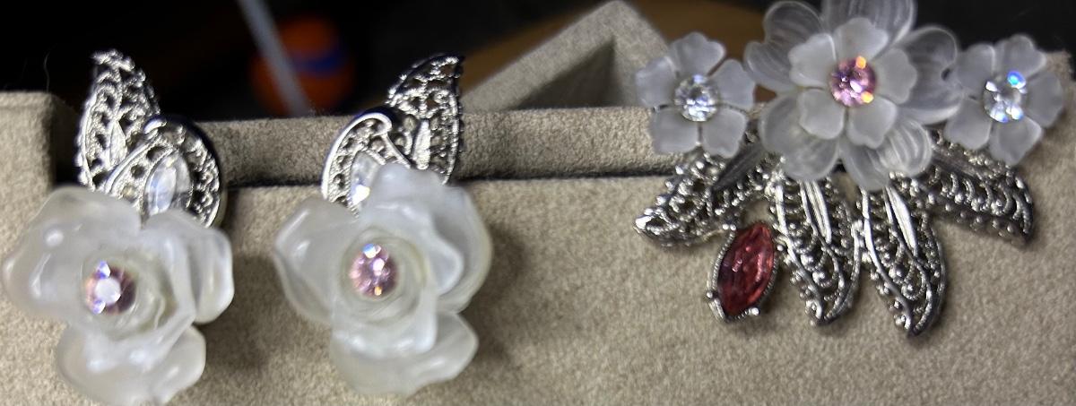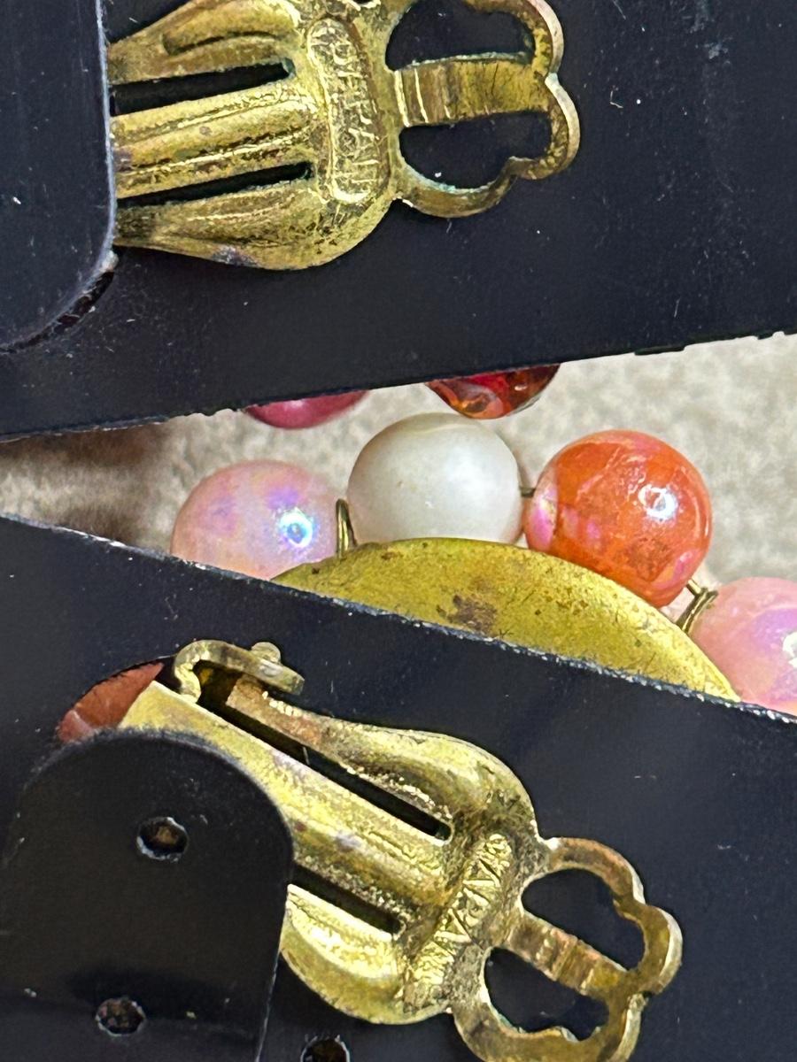 Japan, western Germany, 3 pair of pierced earrings. 1 bangle, this sugar glaze necklace is fire!! 1 brooch & clip on set.