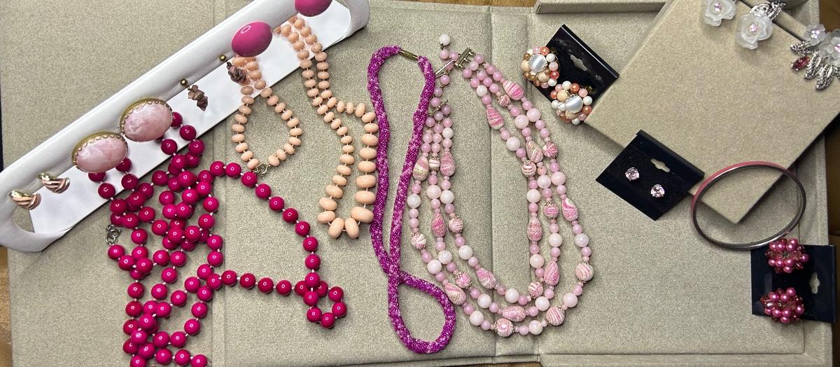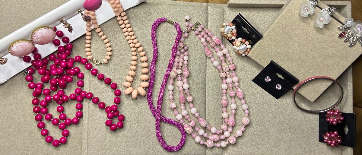 Japan, western Germany, 3 pair of pierced earrings. 1 bangle, this sugar glaze necklace is fire!! 1 brooch & clip on set.
