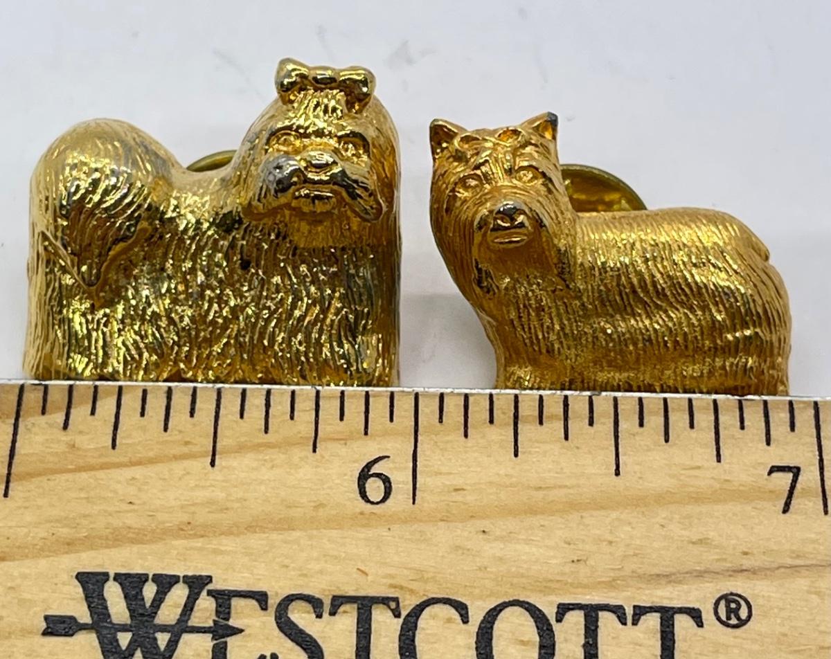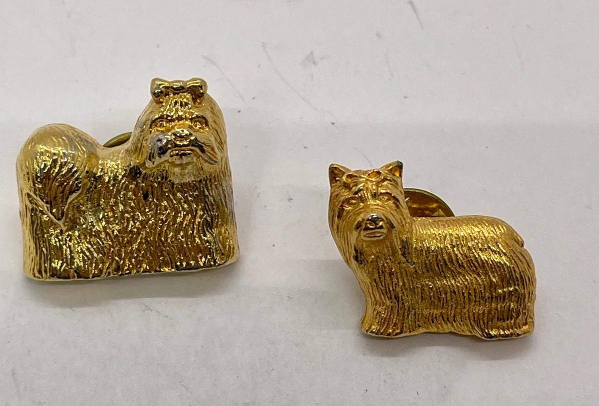 VIntage pins / brooches - two Westie dog pins in gold tine