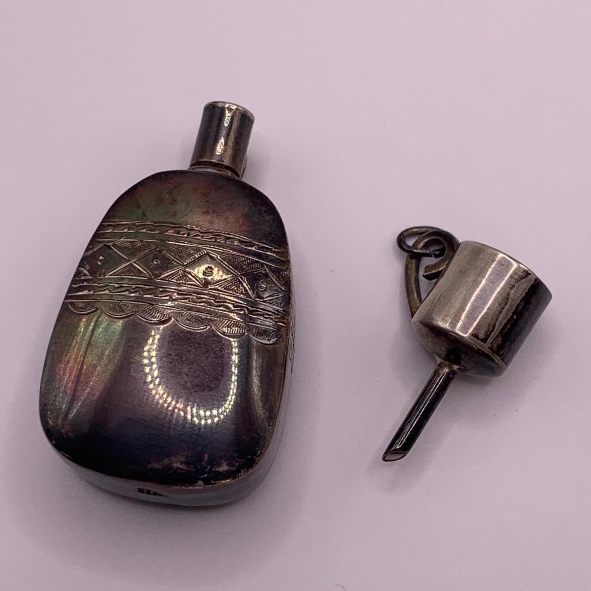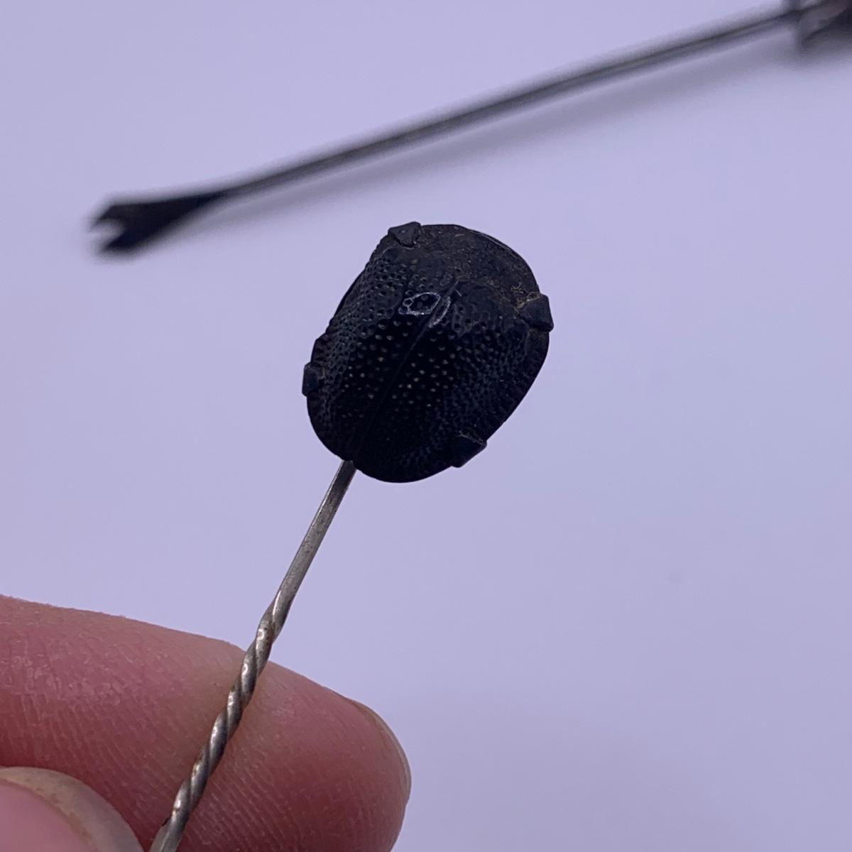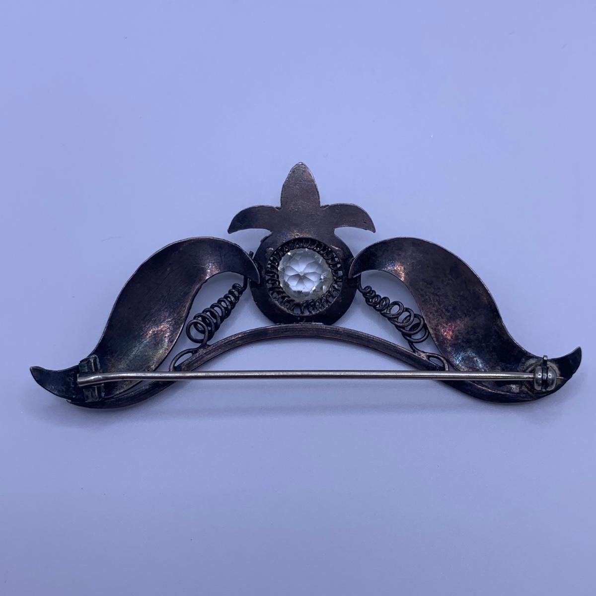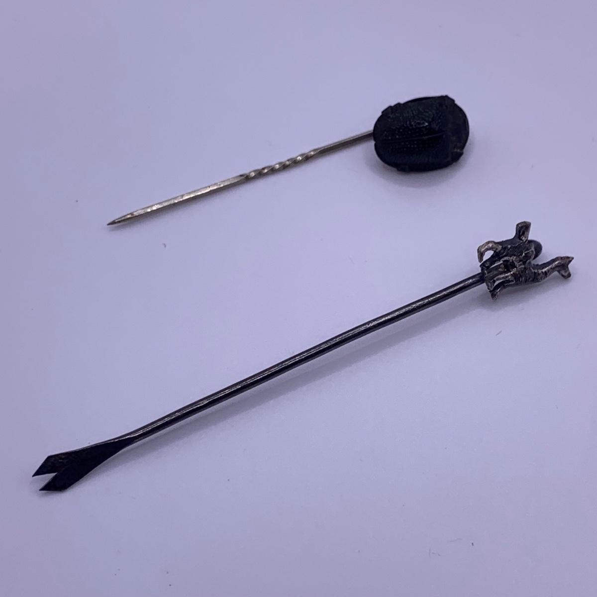 A collection of unique vintage pins and pendants. 11 items total. A variety of items are stamped ‘Sterling’ or ‘925’. One pin has a stone that is turquoise in color (actual stone type not verified). One pin is a tiny bud vase and a pendant perfume bottle with its own funnel.. For reference, the knotted pin marked ‘Made in Scotland’ is approximately 3” x 1.25”.