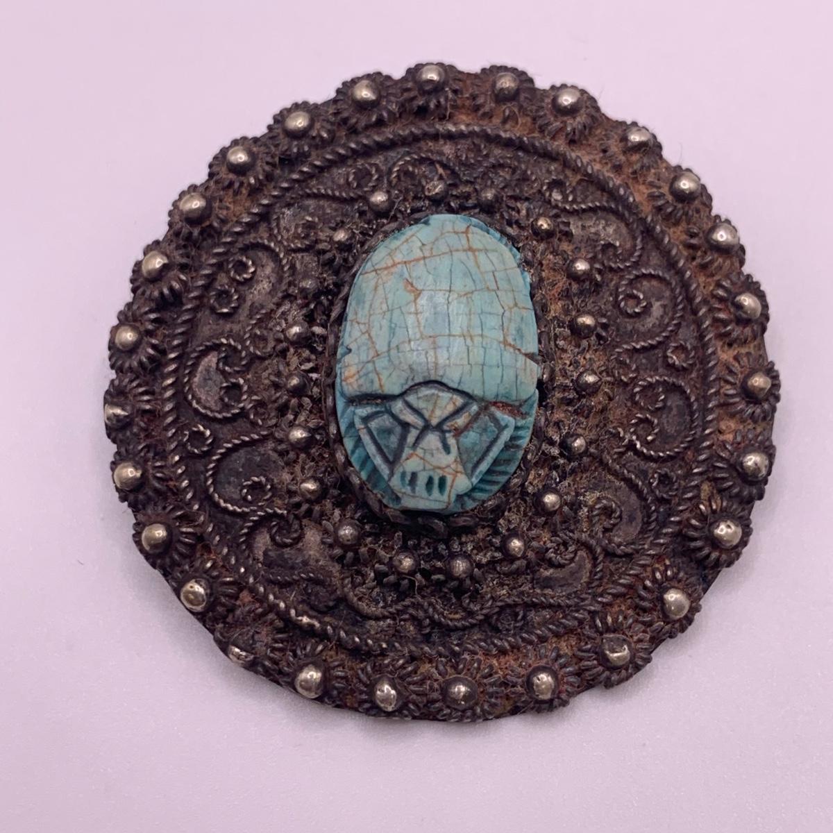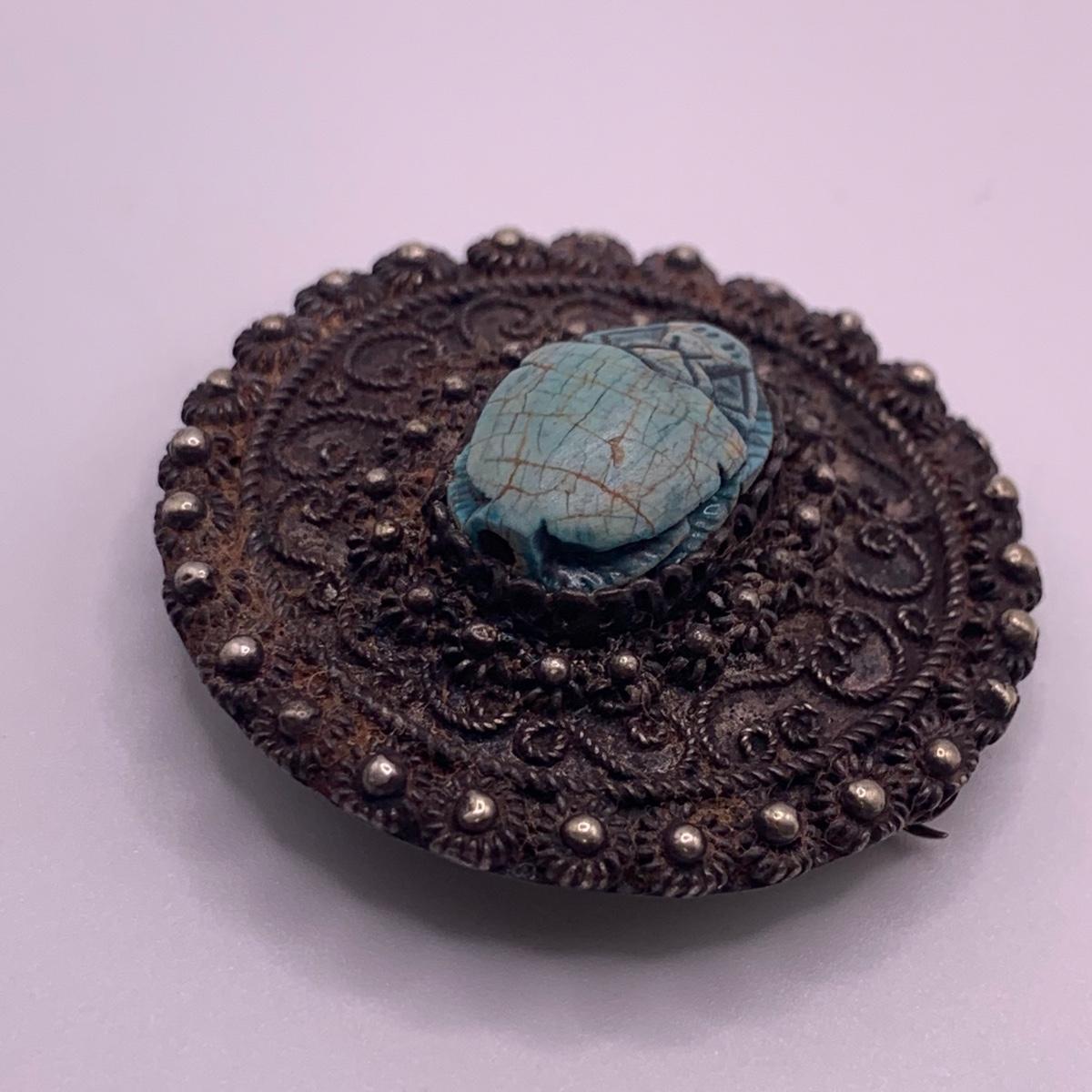 Vintage Pins & Pendants with Sterling Silver & Carved Turquoise Stone (K-HS)
