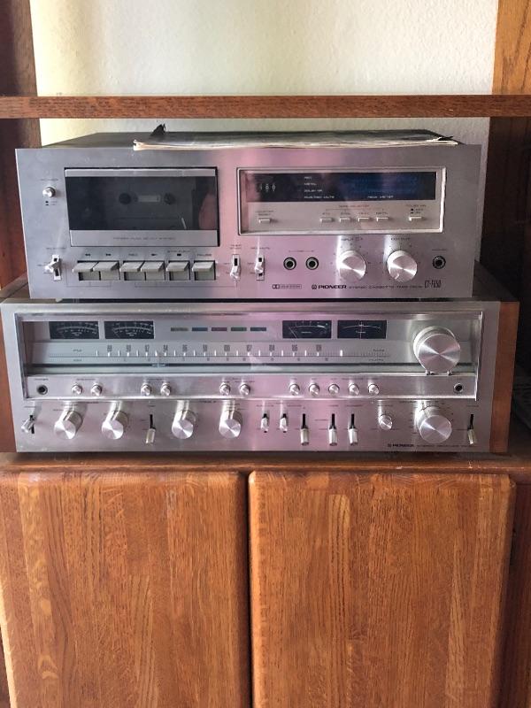 Vintage Pioneer receiver and tape deck. Silver metal finish.