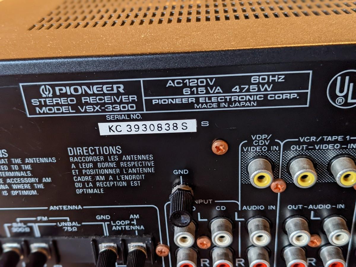 Vintage Pioneer VSX-3300 A/V Stereo Receiver 5-Band Graphic Equalizer