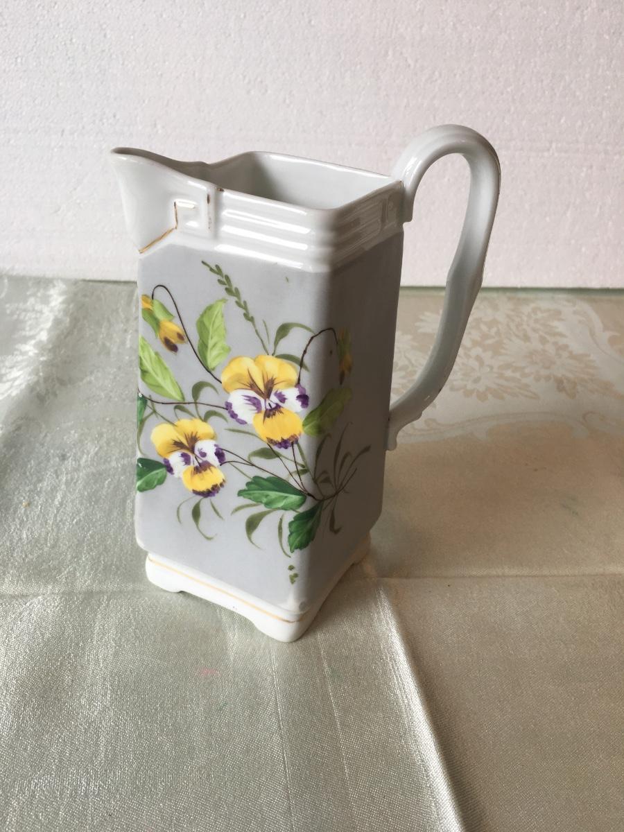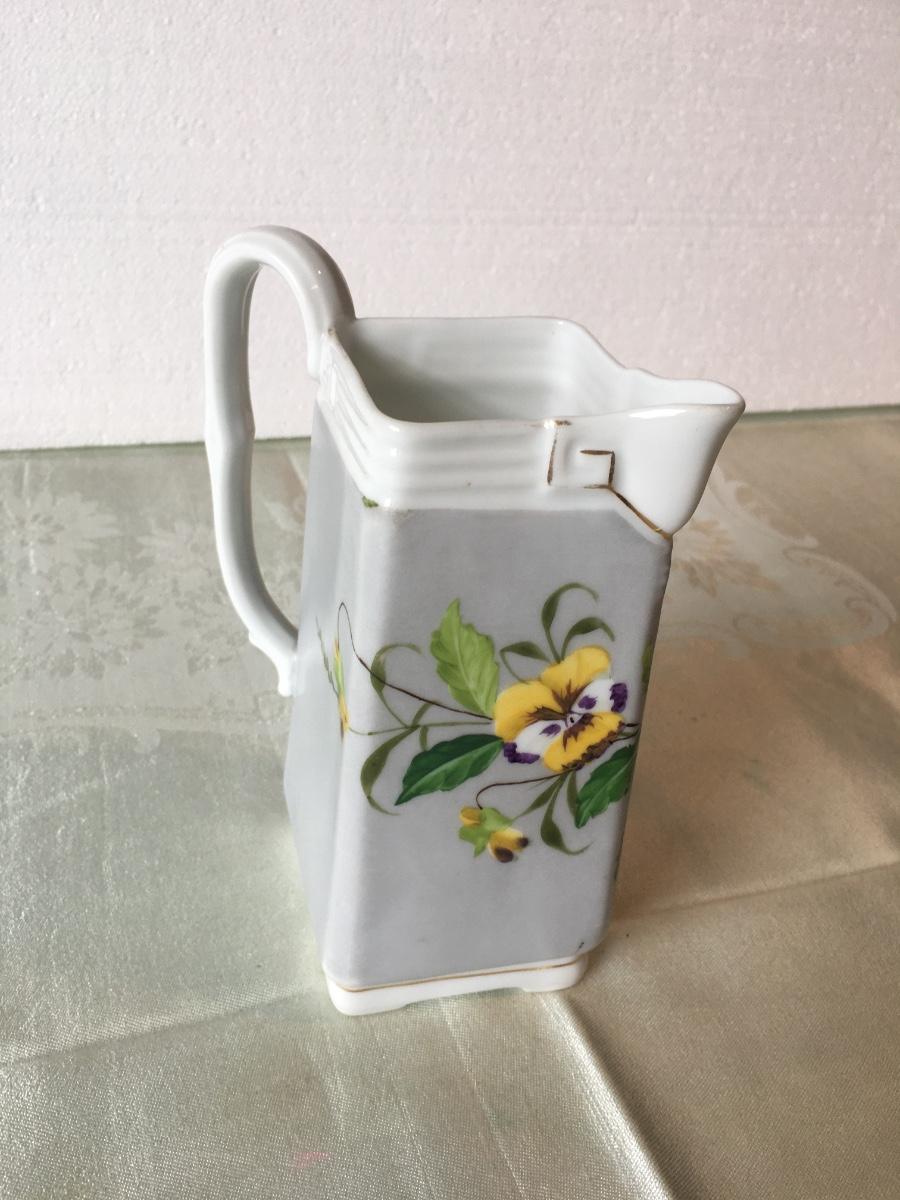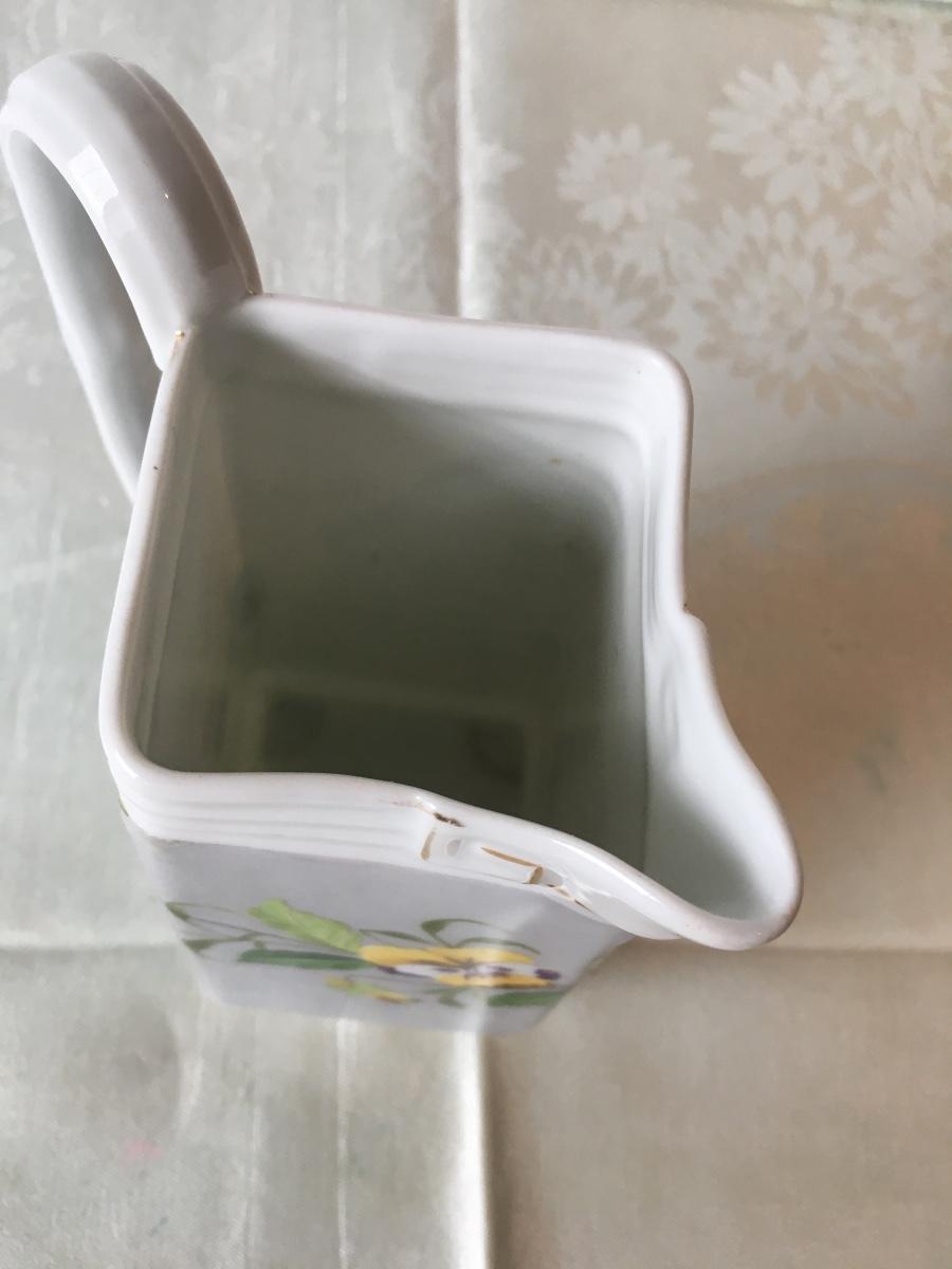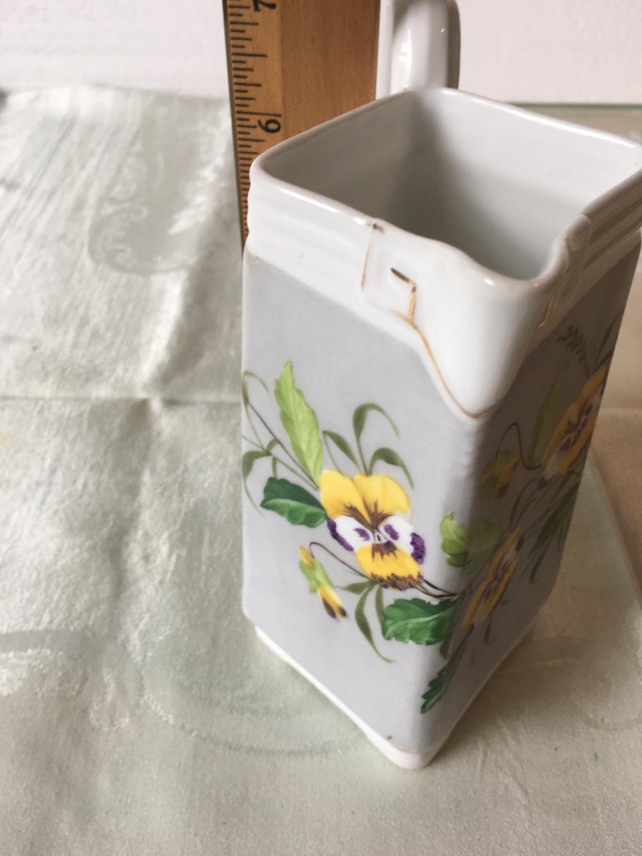 Ceramic pitcher. Worn gold trim. No damage or makers mark