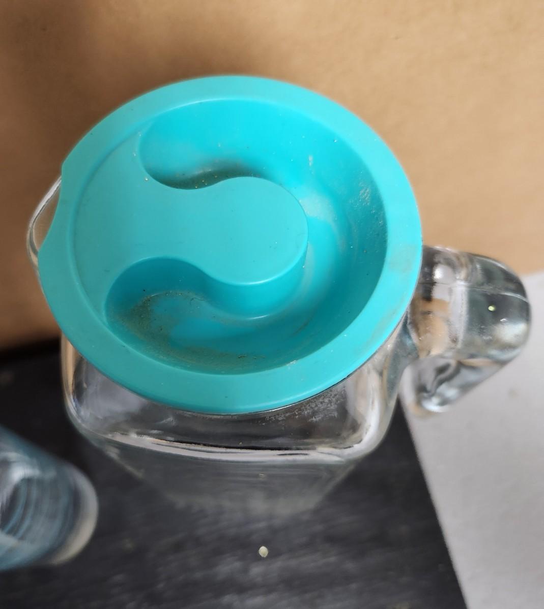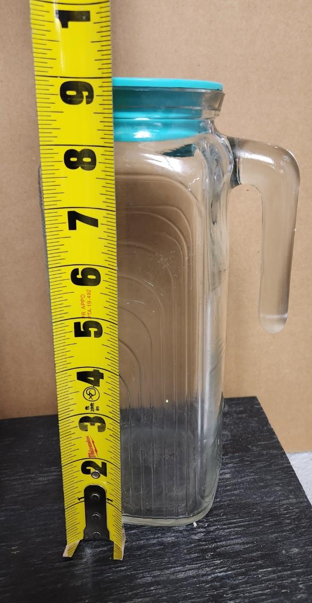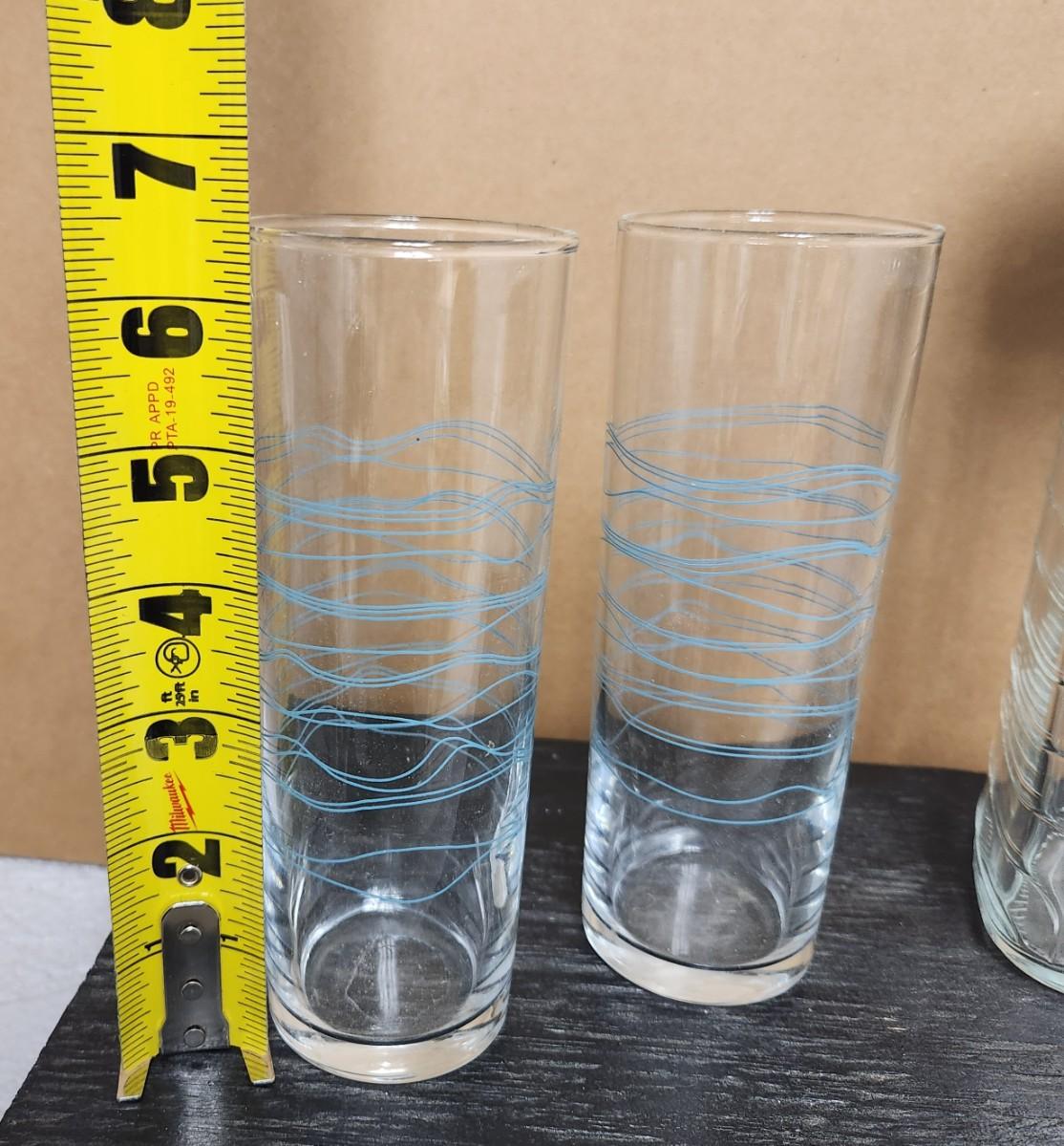 Super cute set of 2 vintage glasses and handles pitcher. Dimensions in the photos