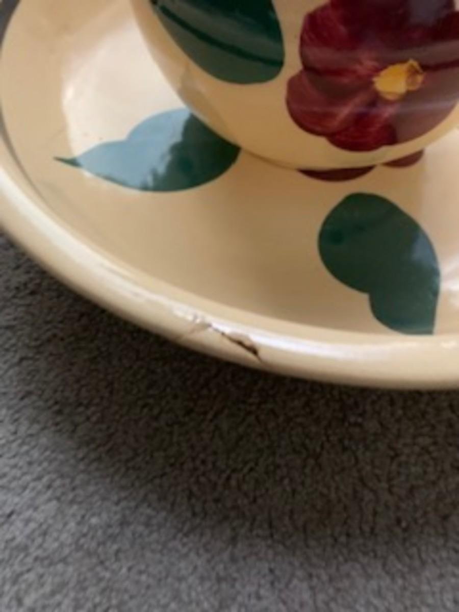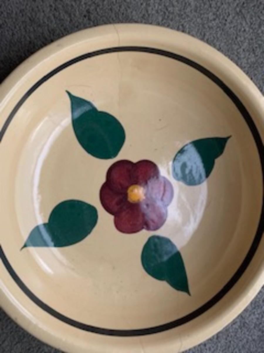 pitcher and basin set features a soft cream glaze and a hand-painted floral motif with red blossoms and green leaves