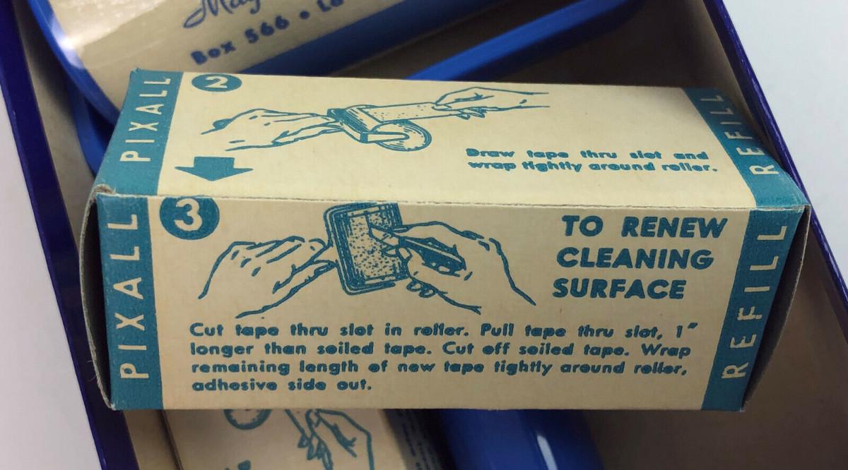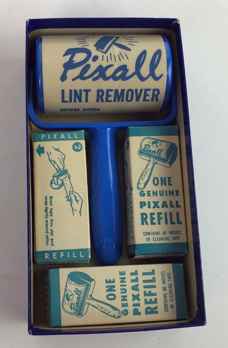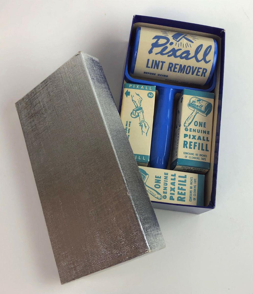 In new unused condition here is a PIXALL Lint Remover and extra adhesive rollers in the original box...Circa 1950's...from Maywood Industries of La Habra, Calif