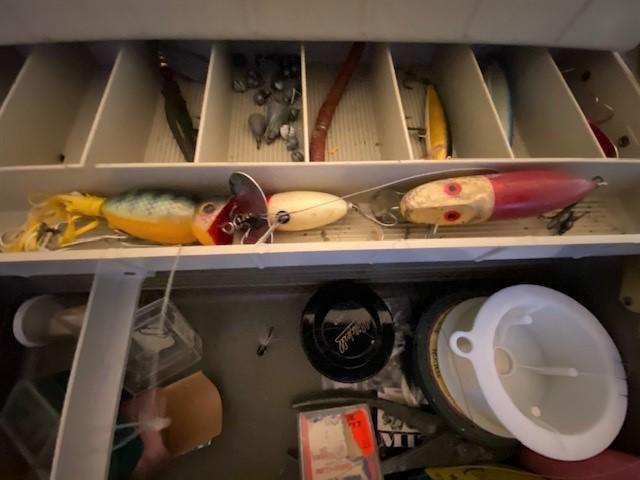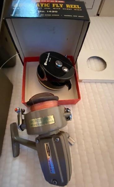 Vintage tackle and two fishing reels