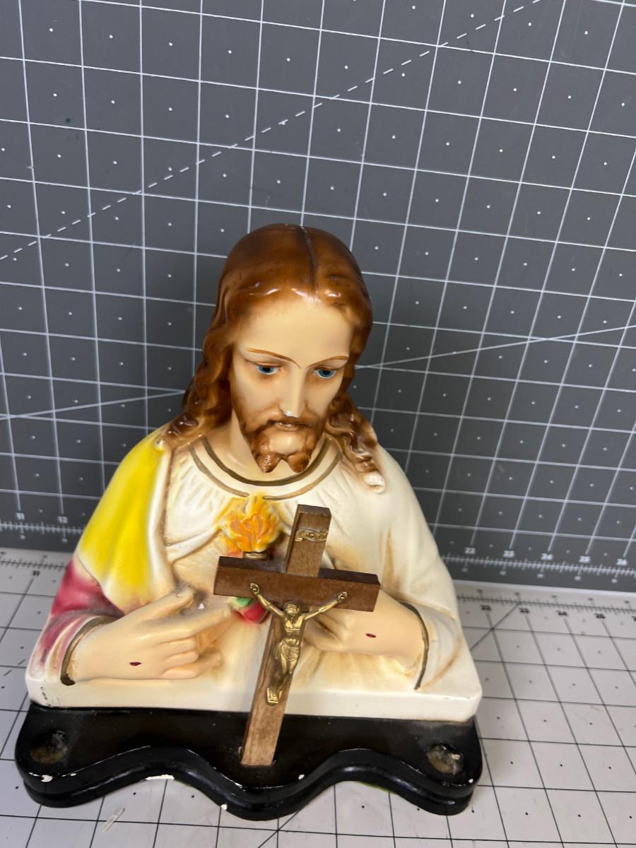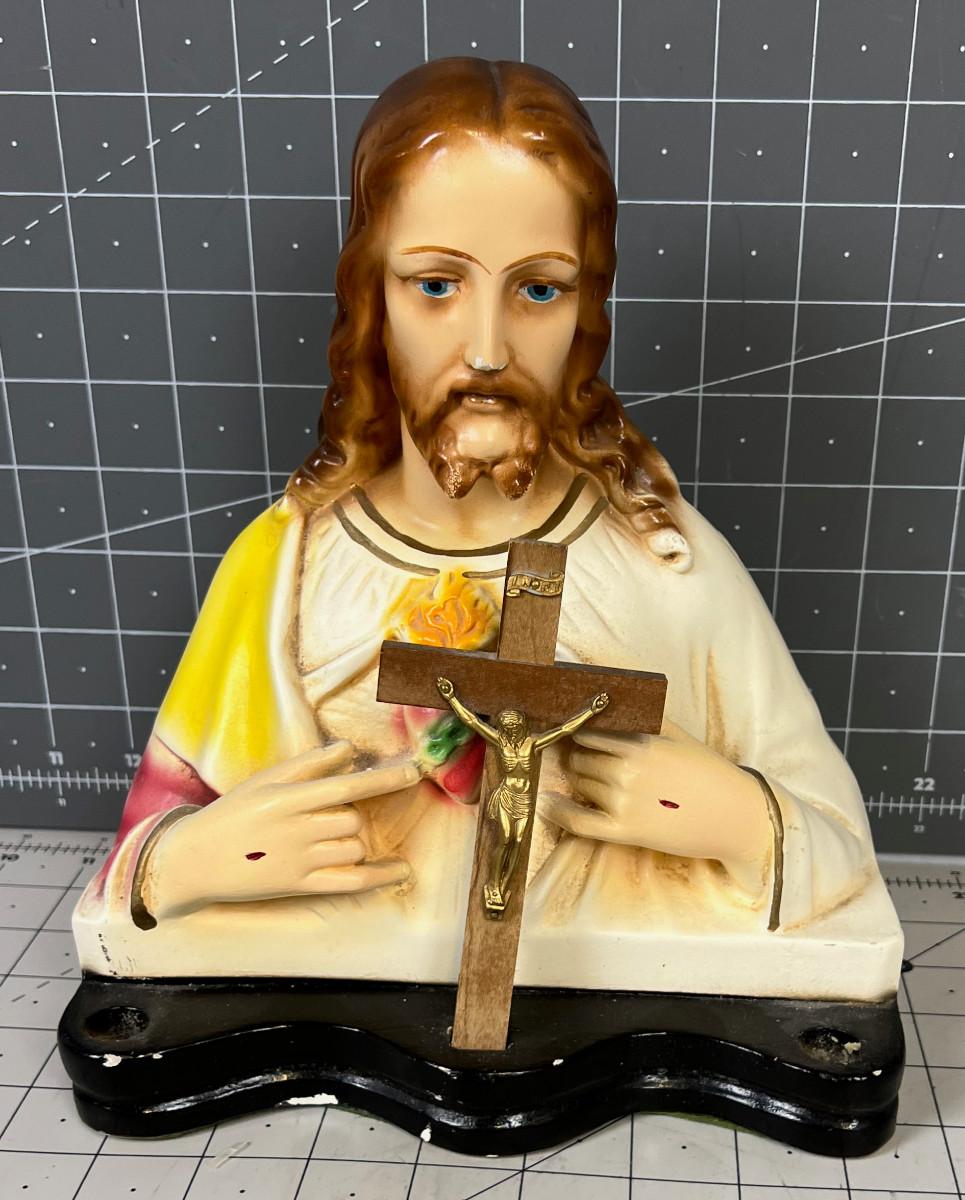 Vintage Plaster Of Jesus, With Secret Hiding Spot for Holy Water