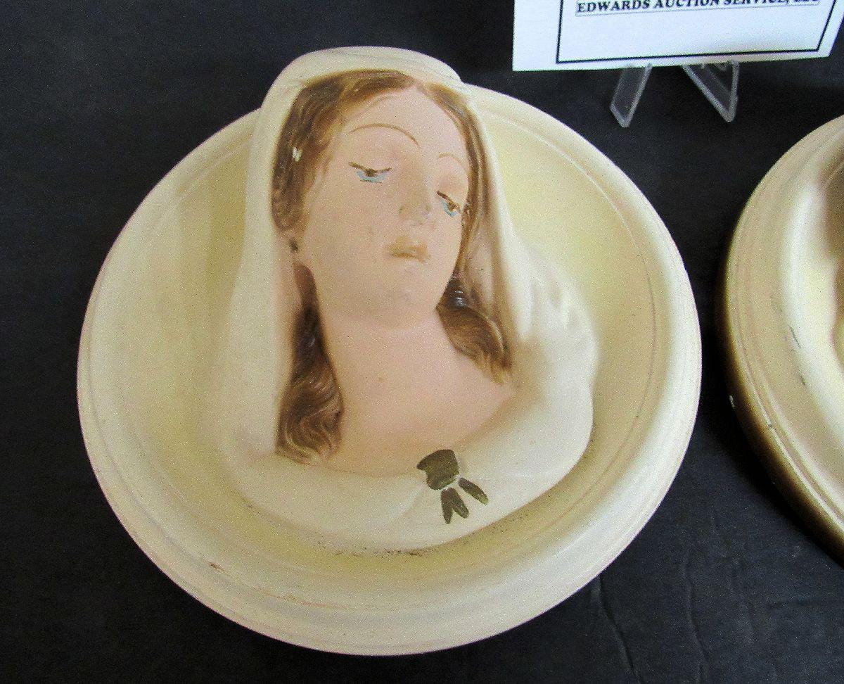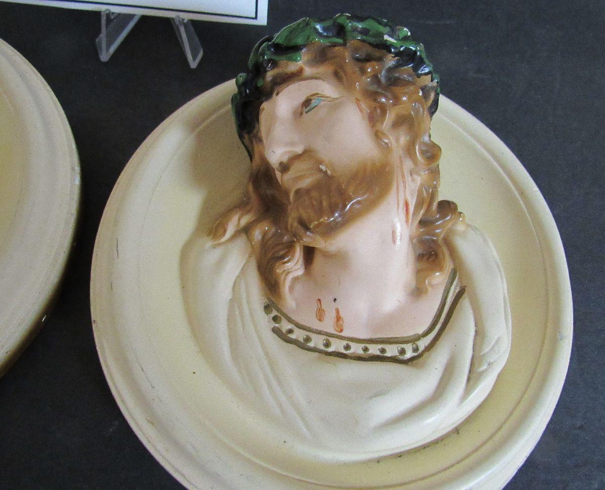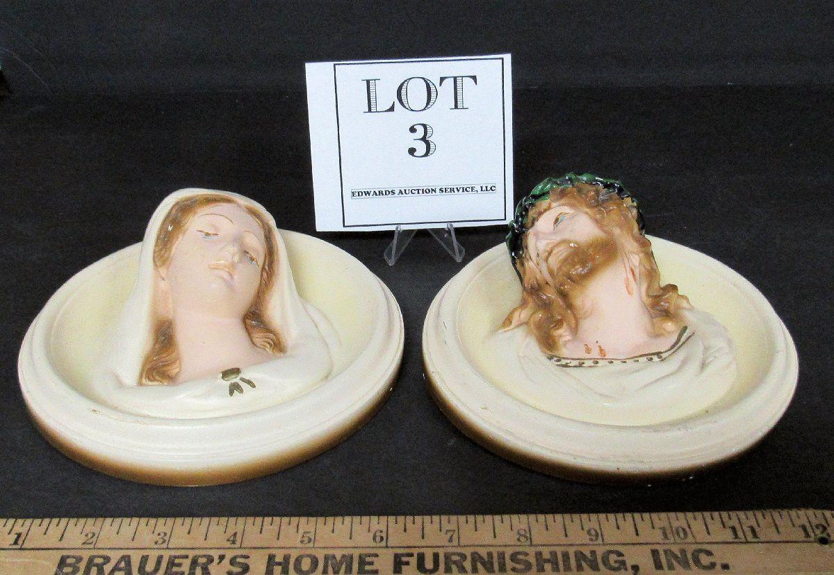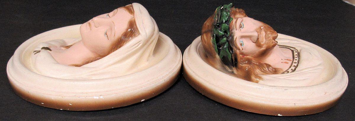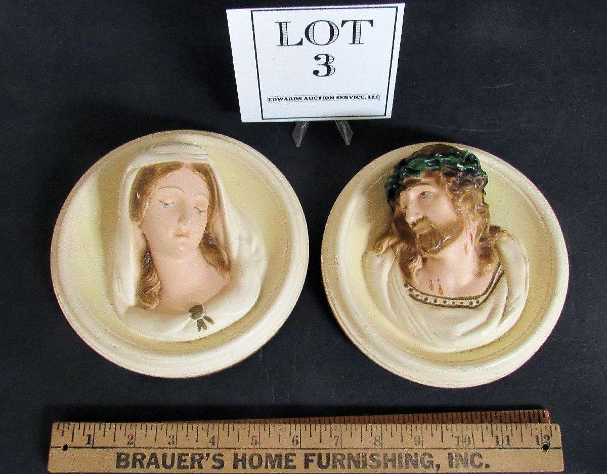 Vintage Plaster Religious Wall Plaques, Jesus and Mary, Dimensional
