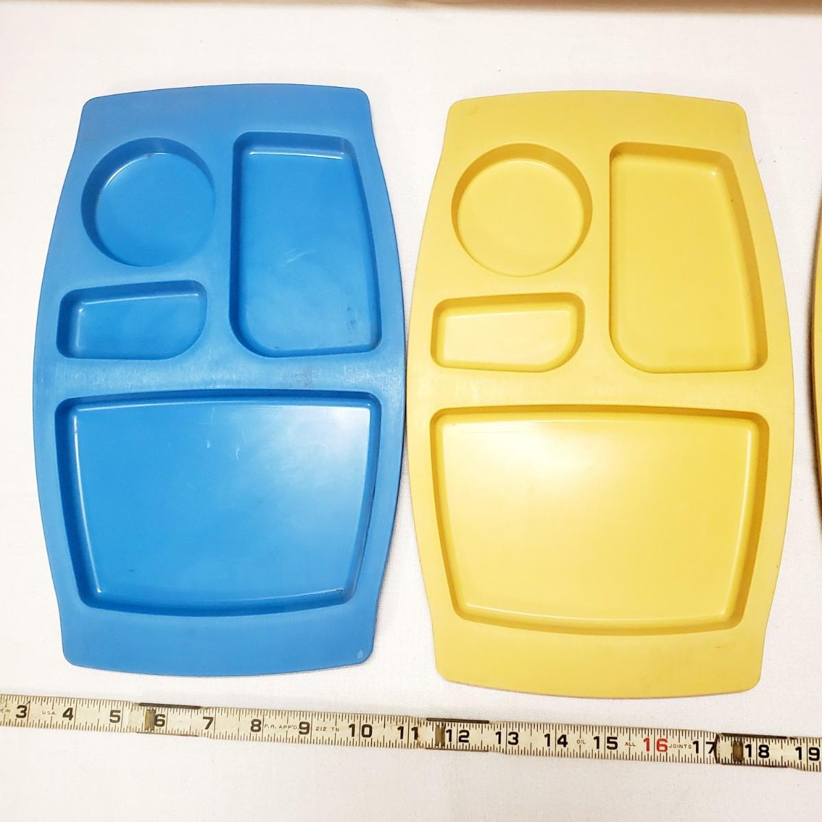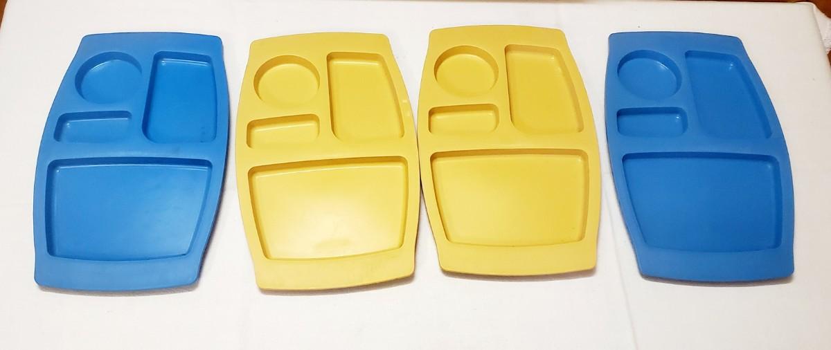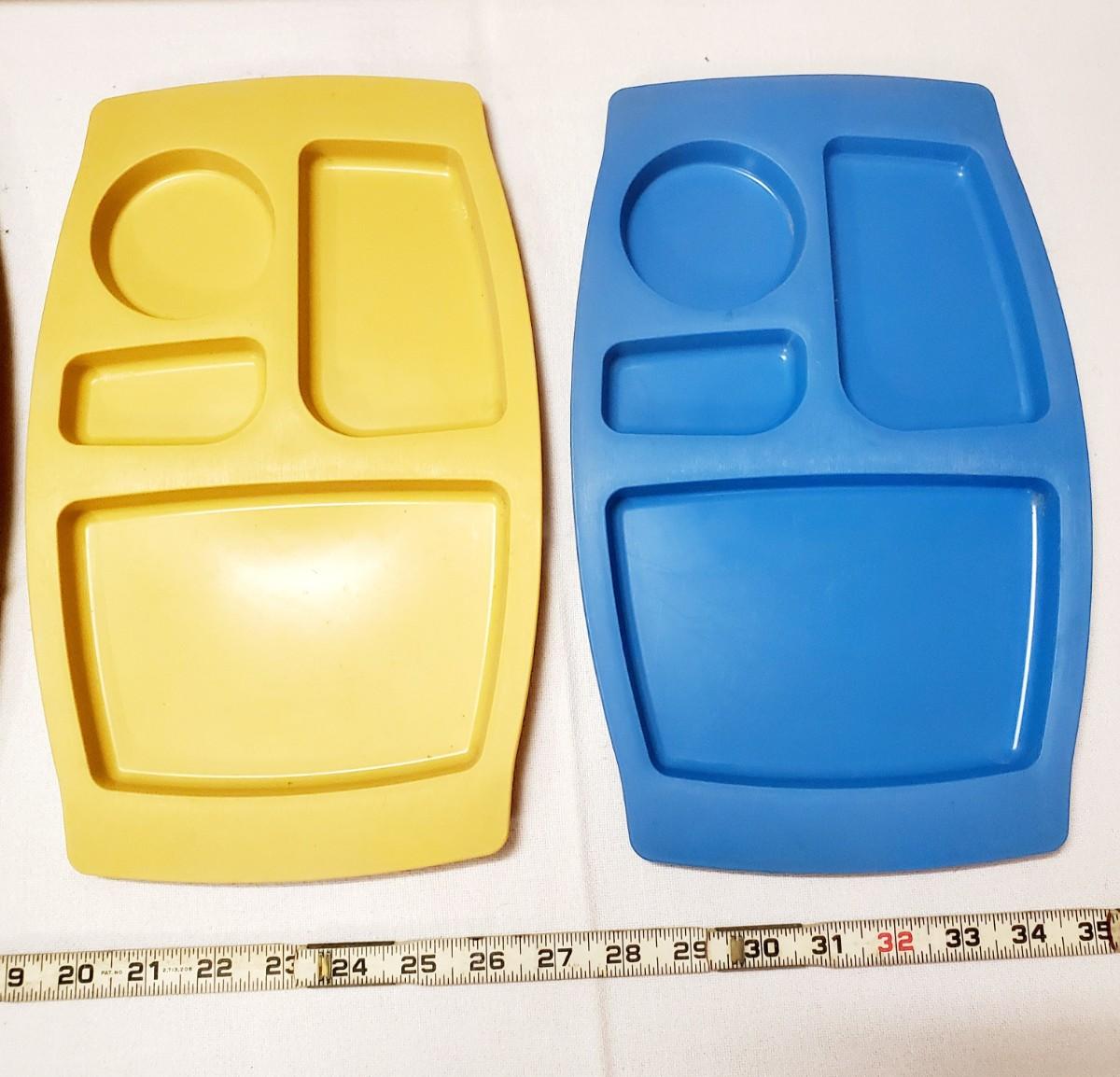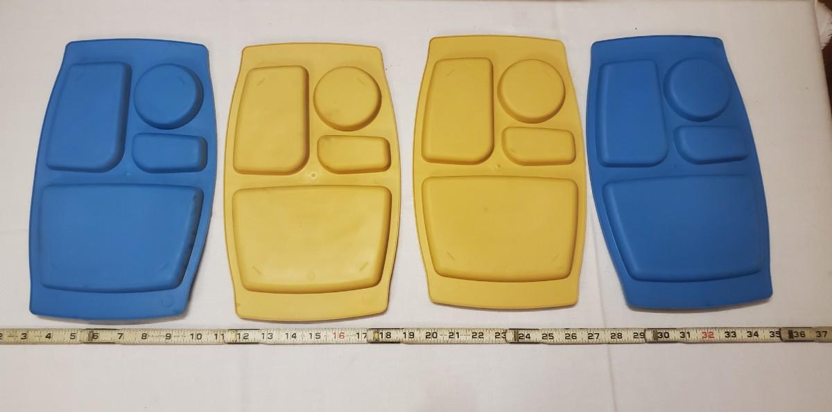 VINTAGE PLASTIC BLUE & YELLOW TRAYS
