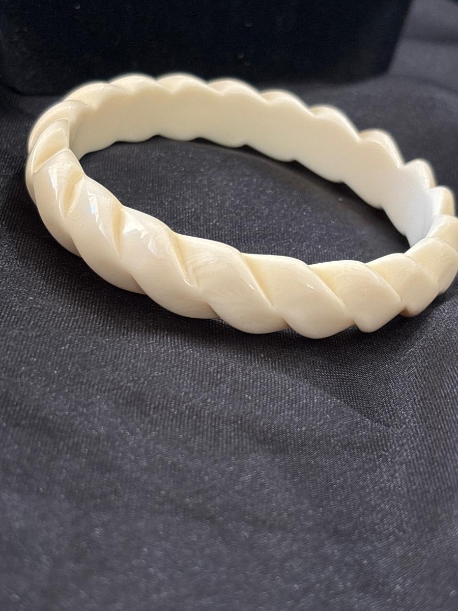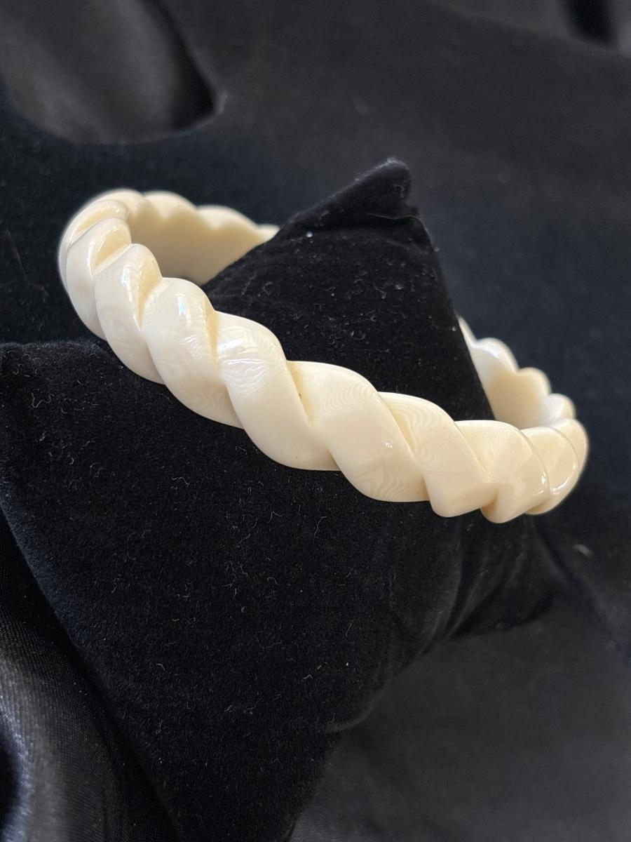 Vintage Plastic Bracelet Cream Color Braided Twisted Style Retro 70s Fun Jewelry
