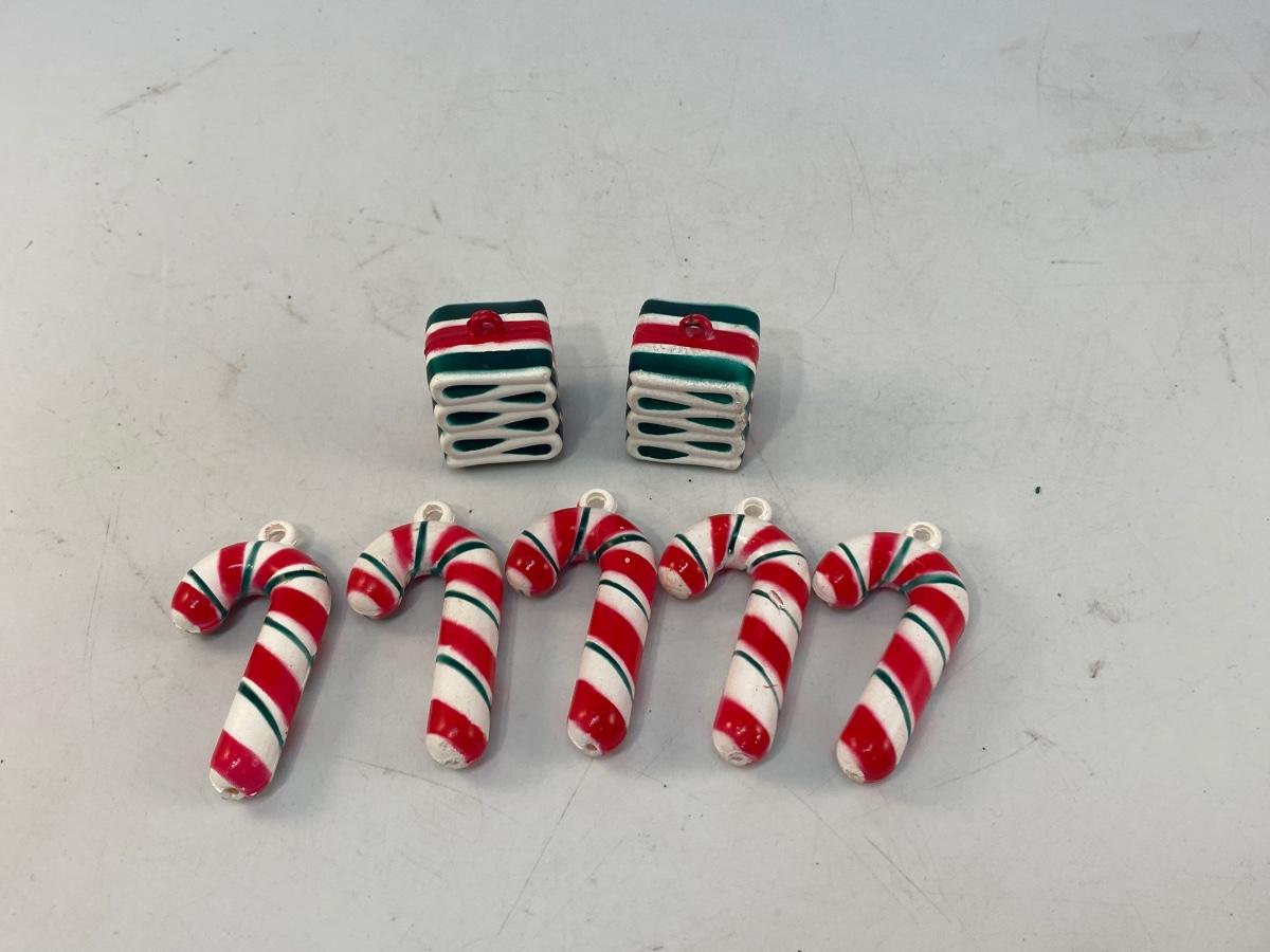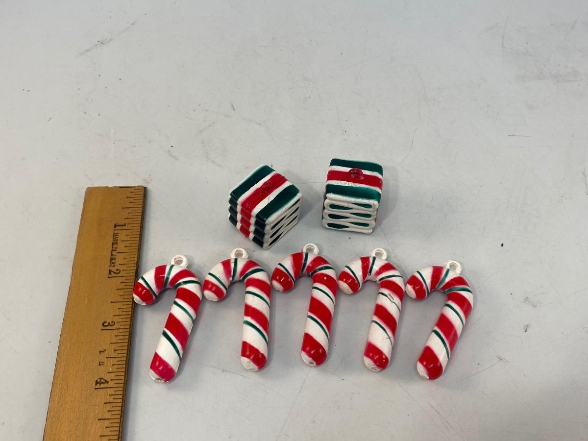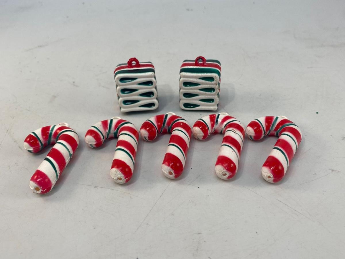 Vintage Plastic Candy Cane and Ribbon Candy Christmas Holiday Ornaments