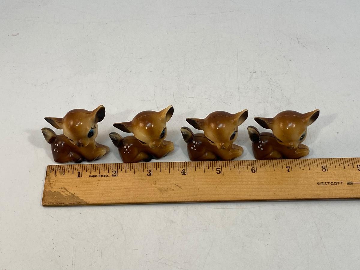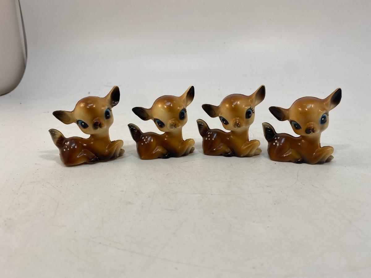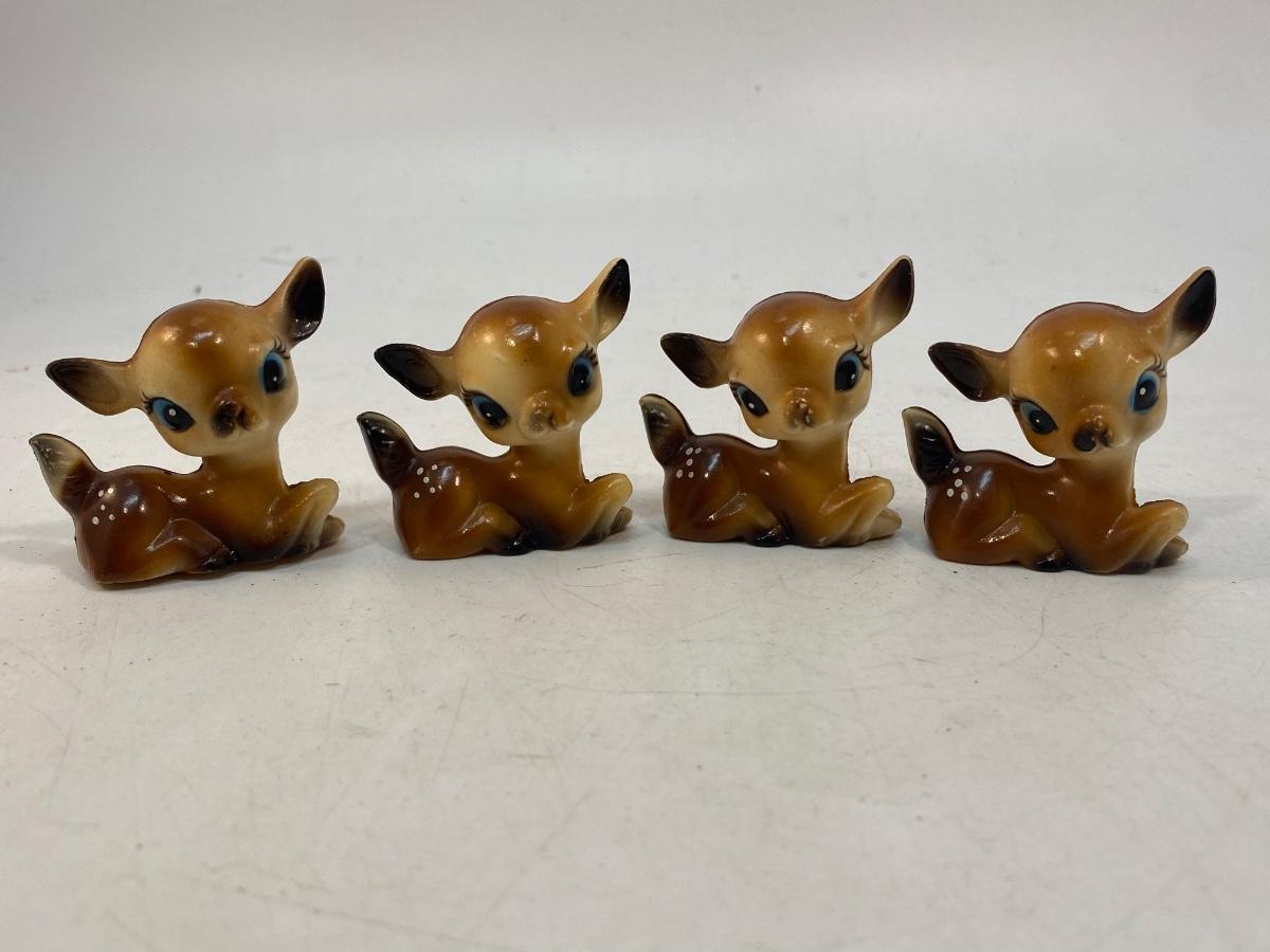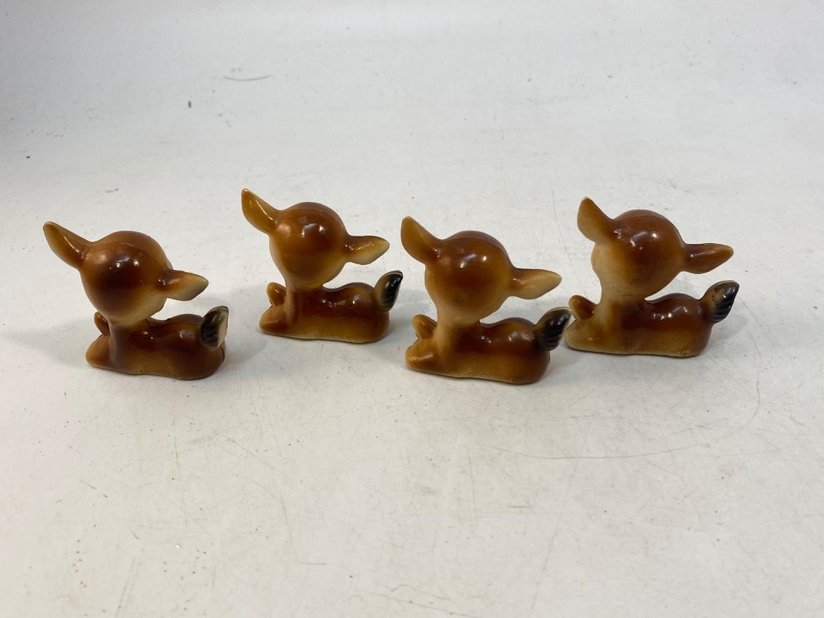 Vintage Plastic Celluloid Deer Fawn Figurines. Photo shows 4 but there is 5 as one was found after the fact. They are all in good condition very little wear.