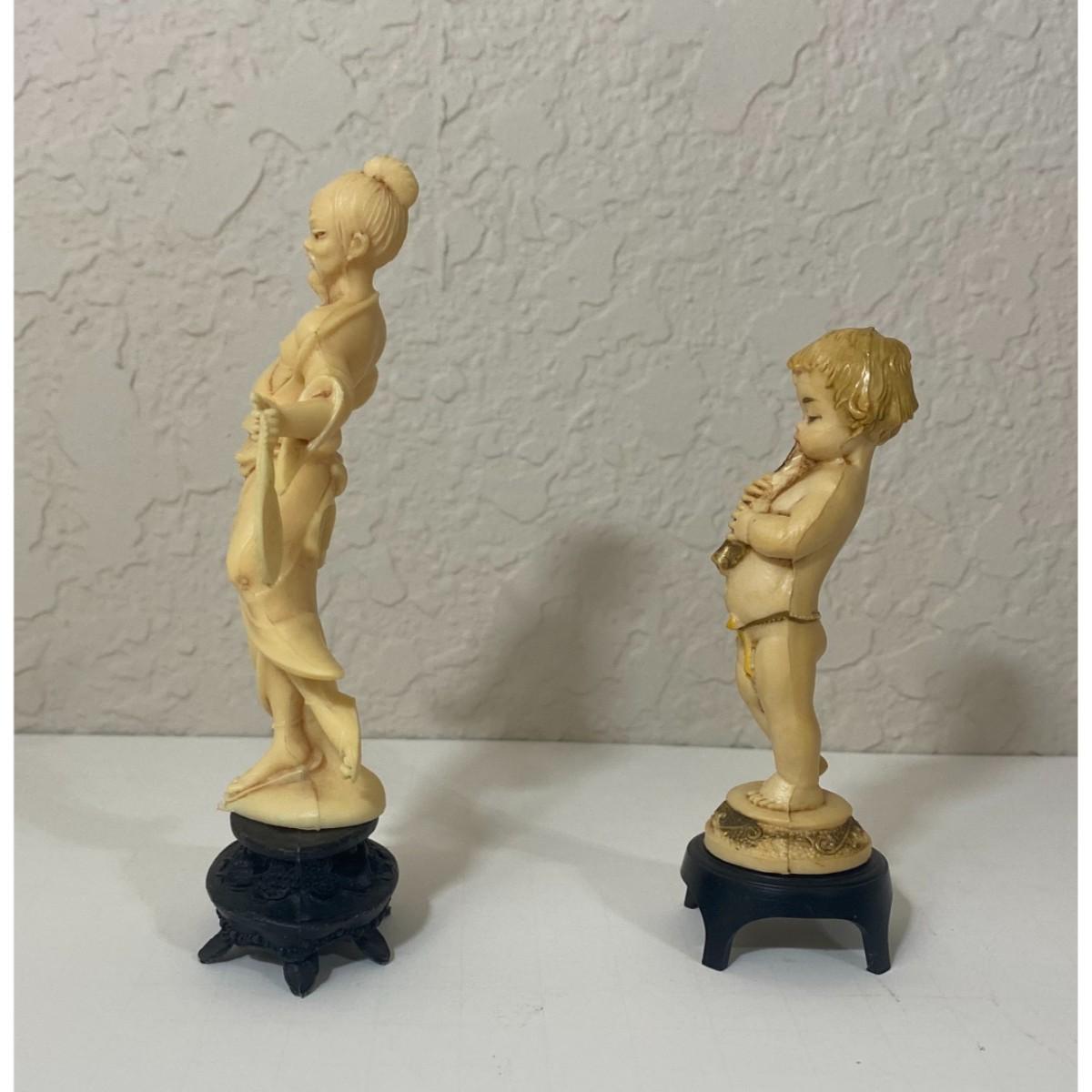 You get two plastic figurines that are in good condition with minor surface wear. Including the bases, the samurai stands approximately 5" tall and the cherub is roughly 4" tall. Please see all pictures. Thank you for looking. As a reminder, if this is a lot, we do not break up lots. Also, all items are prepacked, so each item is sent individually. Any item that qualifies for media mail and weighs over one pound will be shipped via media mail. Otherwise, the item will be shipped USPS ground advantage, or UPS ground. Shipping for this item is $6.00. Items ship within two days after payment is received. Item SKU is OTH3091.