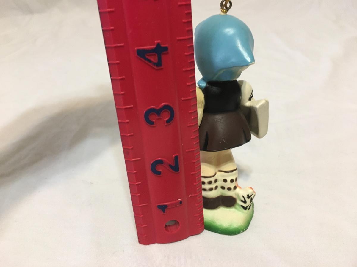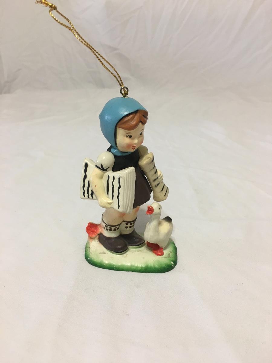 Vintage Plastic Christmas Ornament Girl W/ Goose Hummel Like