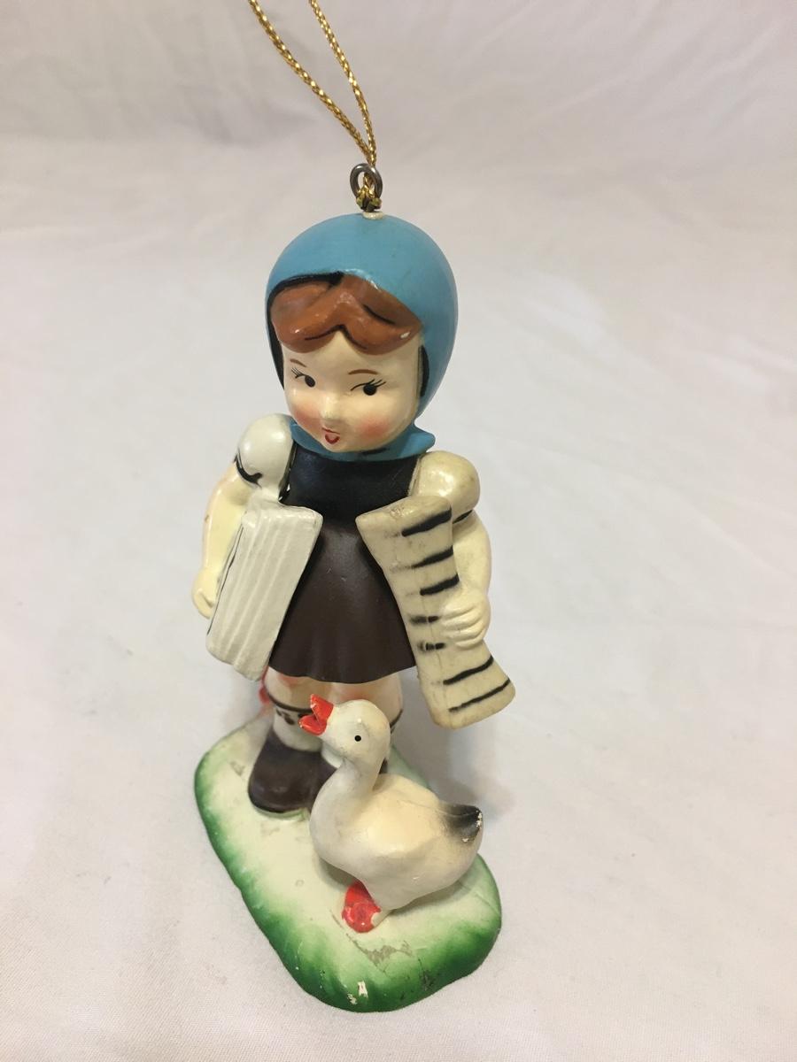 Vintage  Plastic Christmas Ornament Girl  W/ Goose Hummel Like