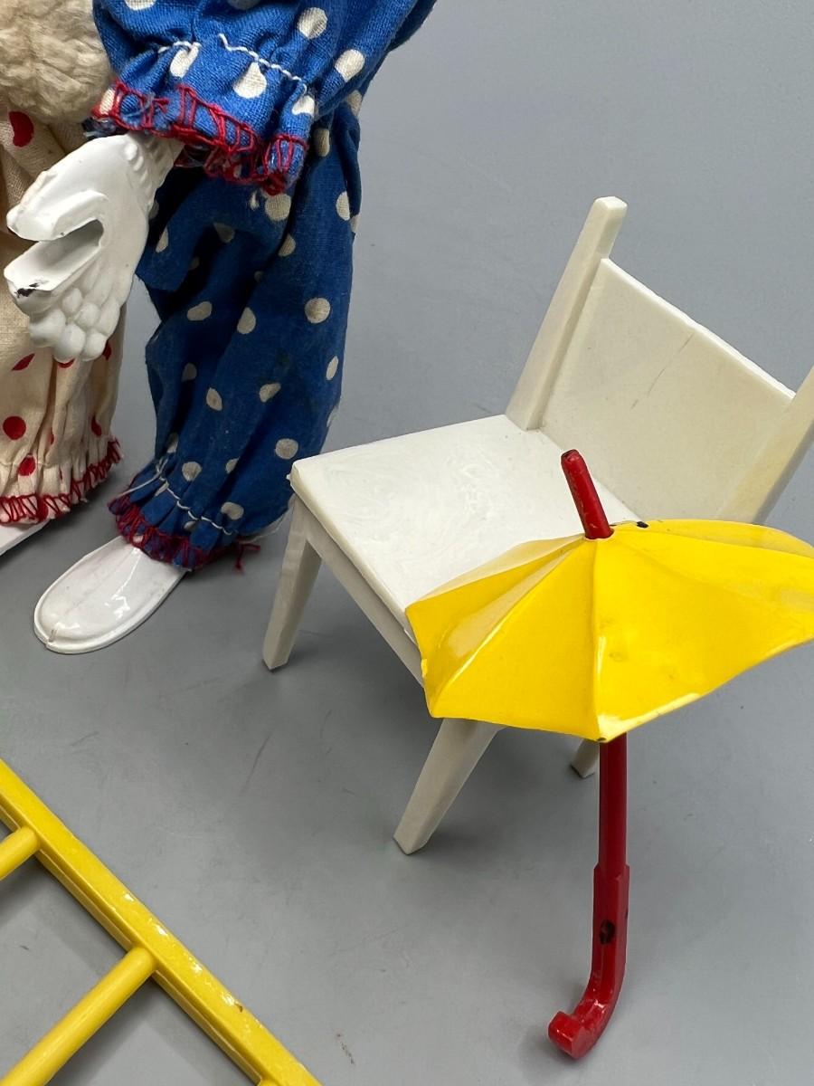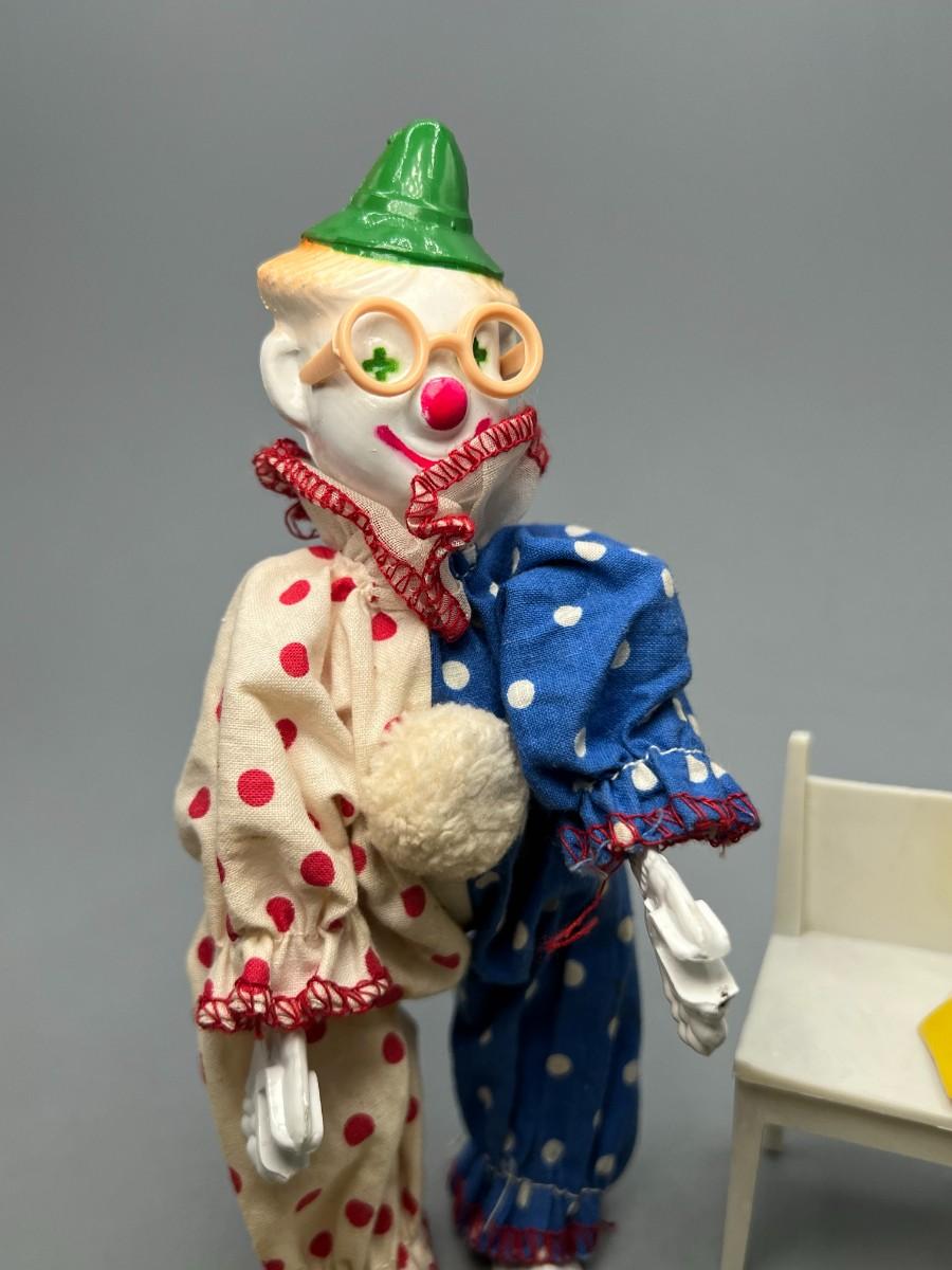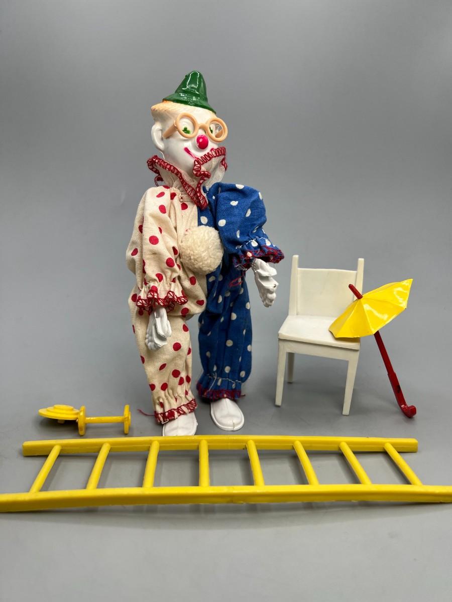 Vintage Plastic Colorful Clown Poseable Figurine with Accessories & More