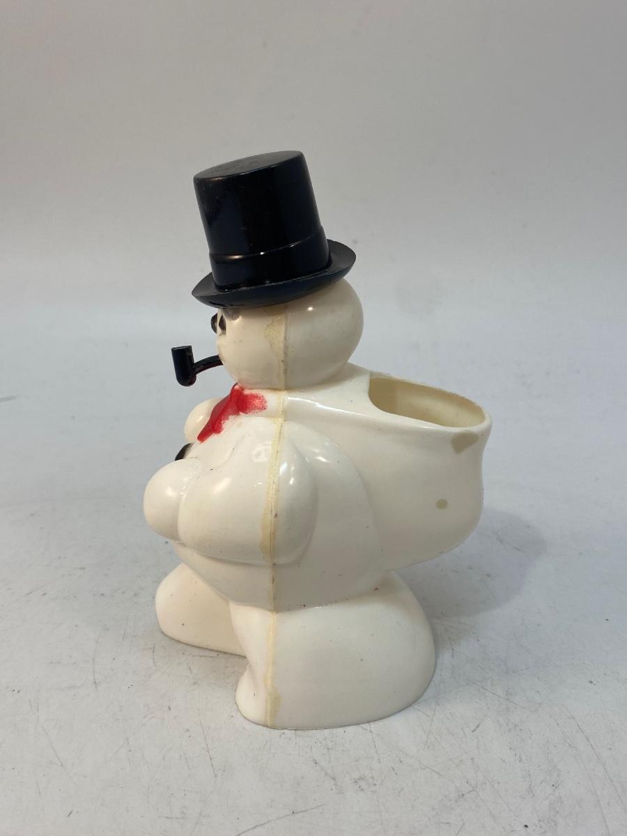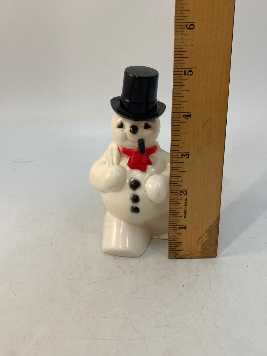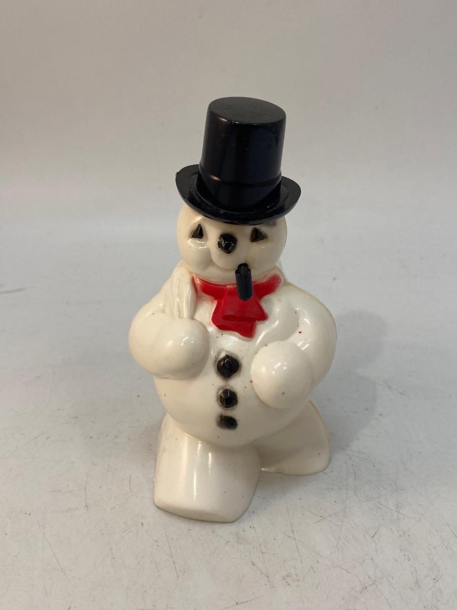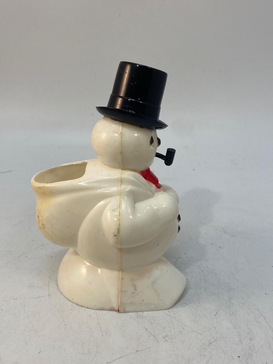 Vintage Plastic Frosty the Snowman Figurine. Has an opening like a small planter. Displays well. About 5".