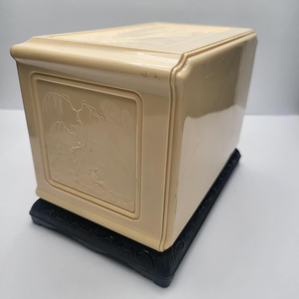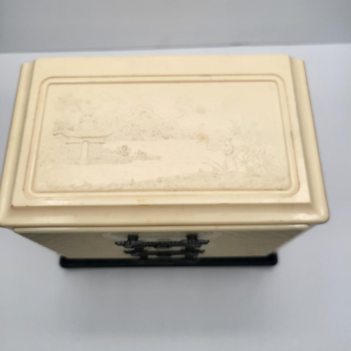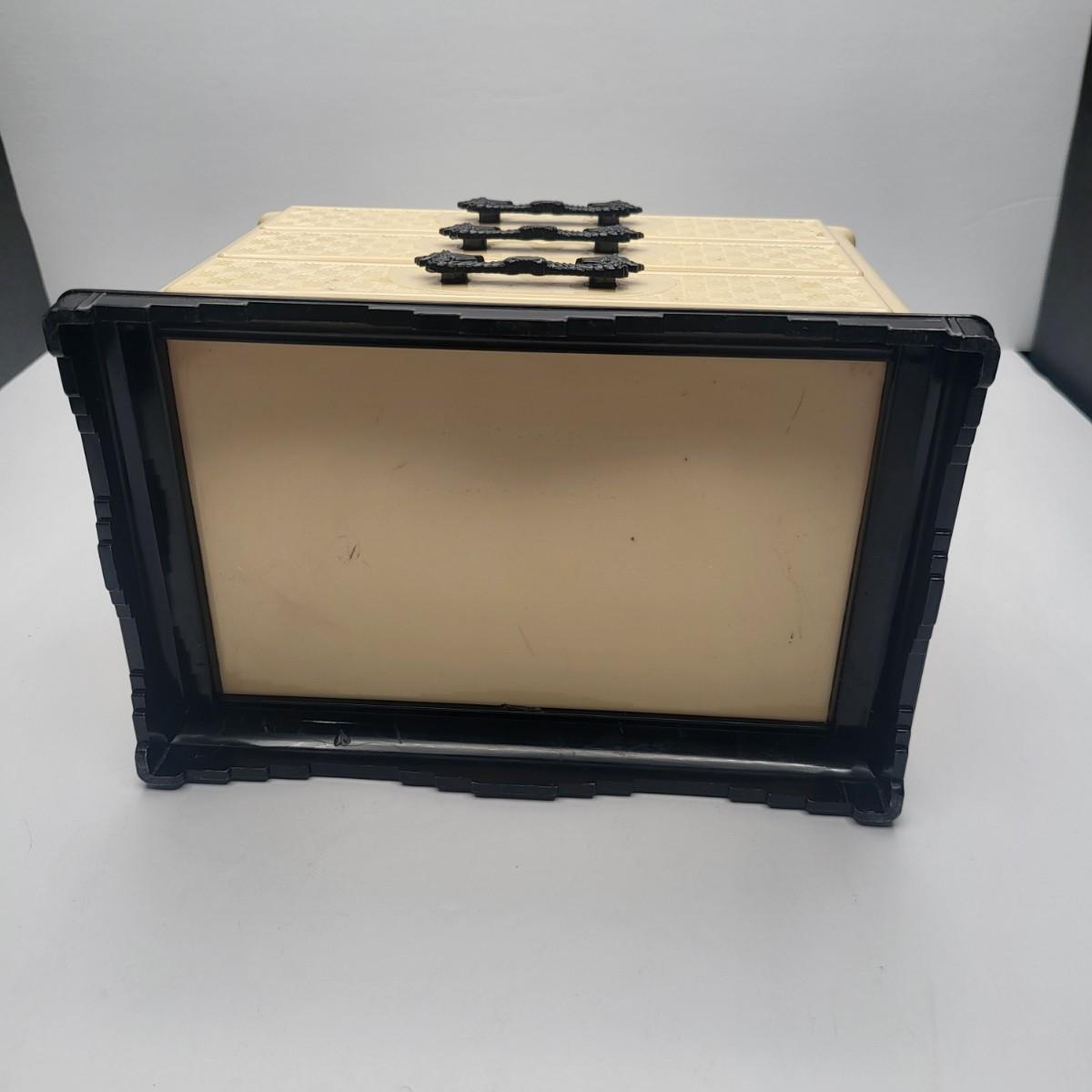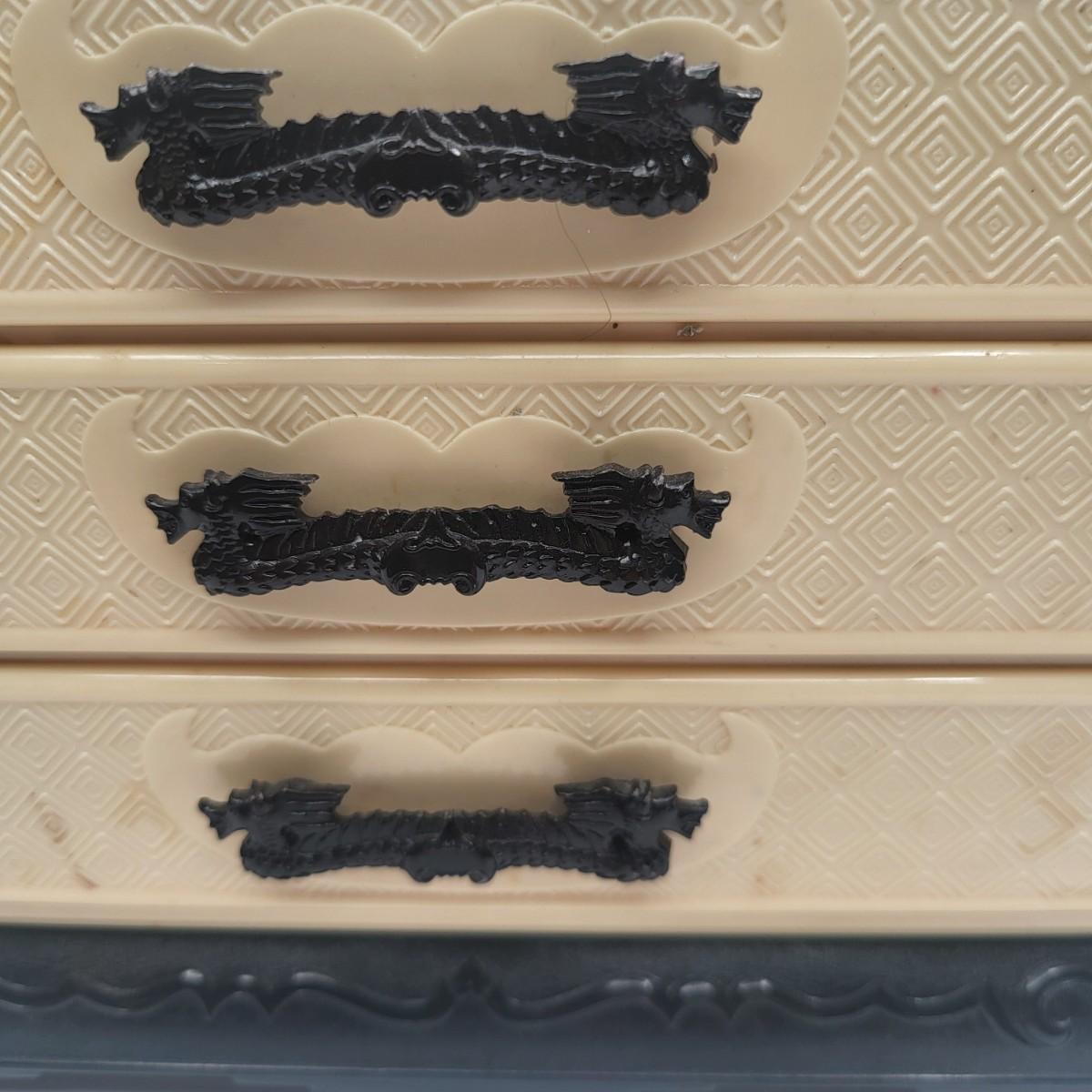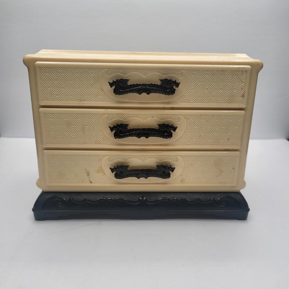 Cool little vintage plastic jewelry box with 3 drawers. Asian motif