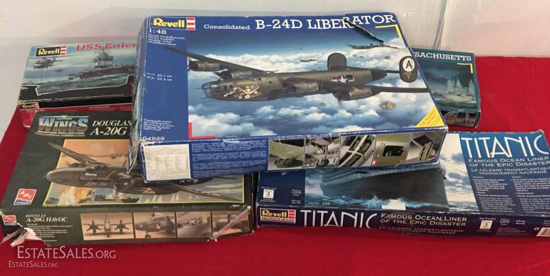 Vintage Plastic Model Kits Ships, Planes, Military lot of 5