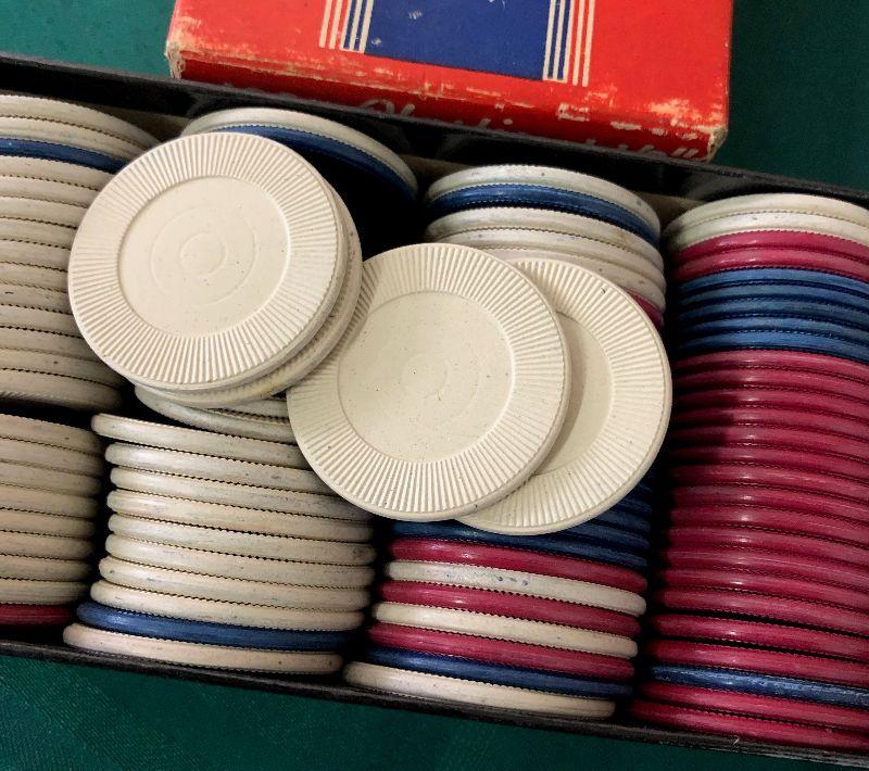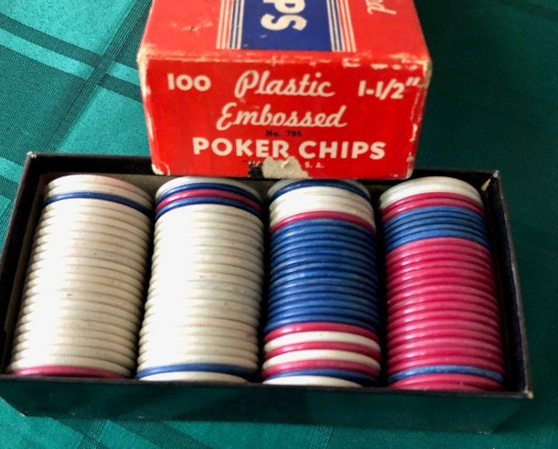 Here is a pack of vintage Poker Chips..Plastic..Embossed...1 1/2" dia...Normal use...