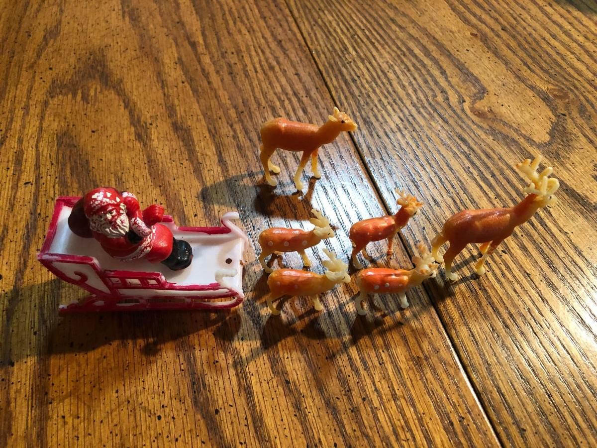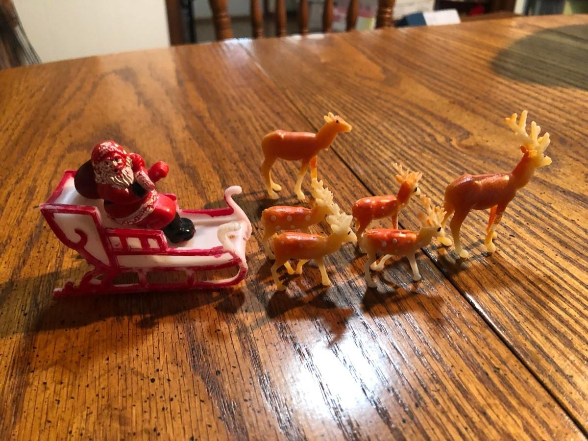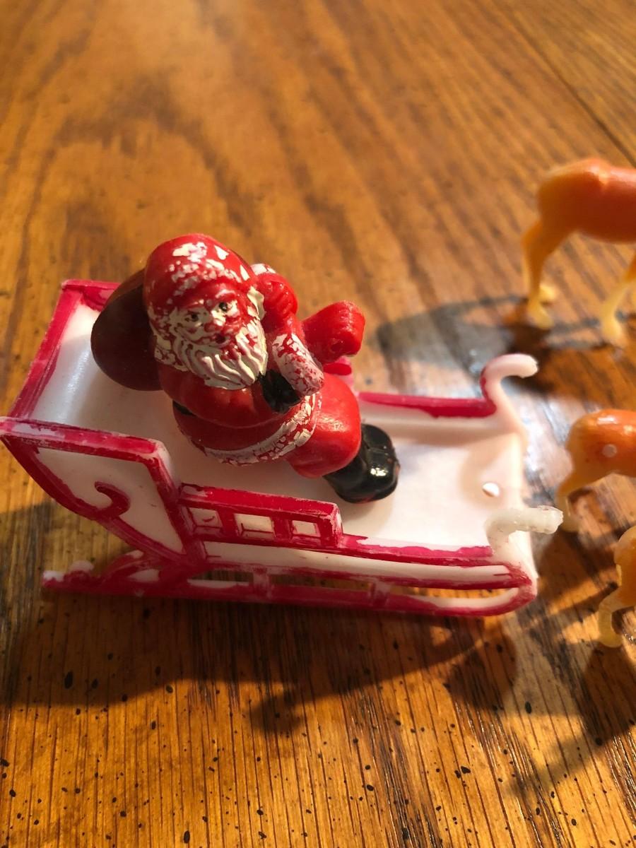 Vintage Plastic Santa, Sleigh and Reindeer Christmas Figures