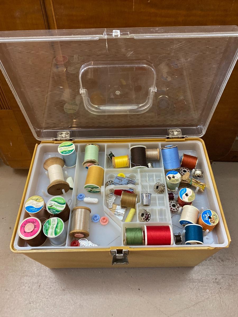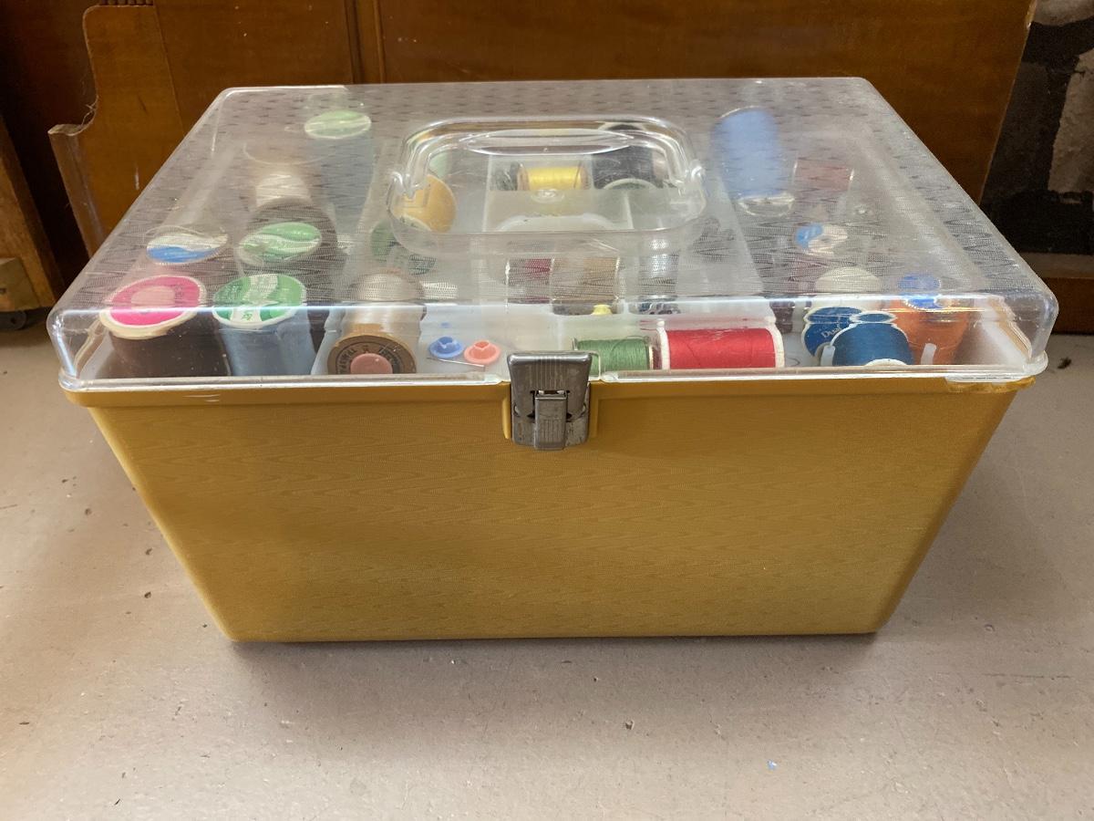 Vintage Plastic Sewing Storage Case Yellow with Notions Patterns